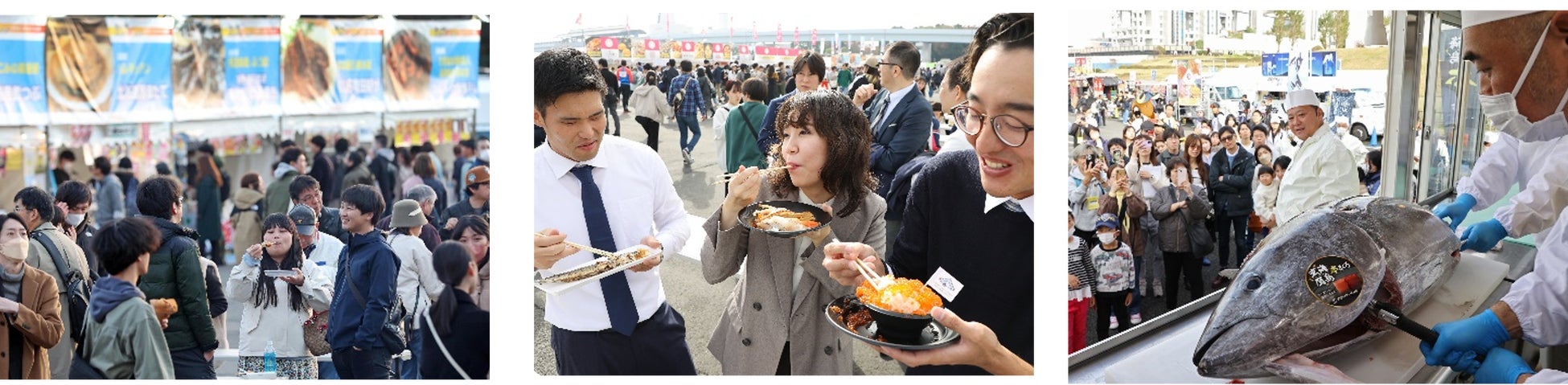 間で約17万人が来場しました。24年2月に東京・代々木公園で、3月に大阪・扇町公園でも開催し3会場で約40万人が来場。2016年に東京・日比谷公園で始まった前身イベントの「ジャパンフィッシャーマンズフェスティバル~全国魚市場&魚河岸まつり」などを合わせた累計来場者数は約190万人に上ります。