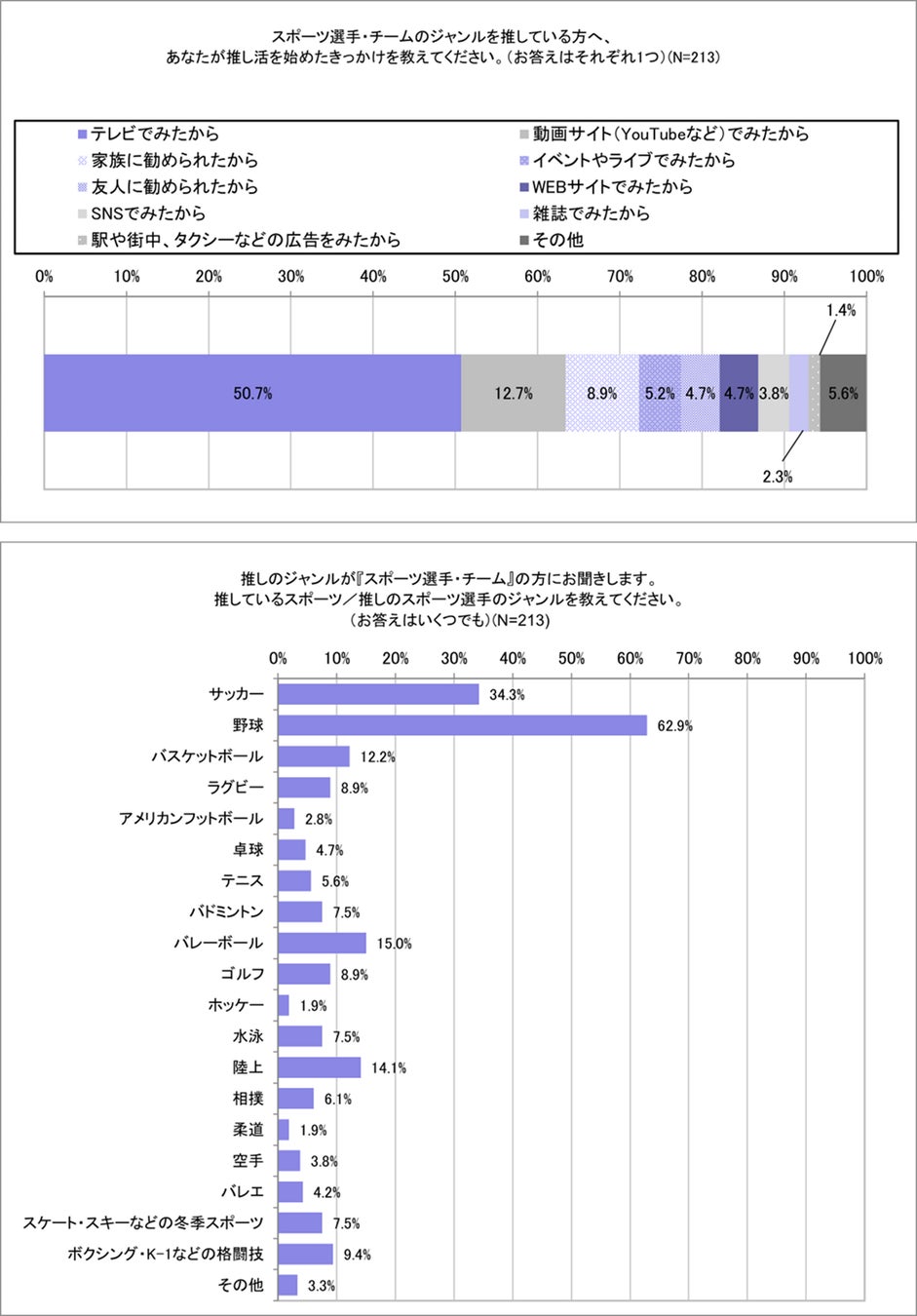 スポーツは「野球(62.9%)」「サッカー(34.3%)」が人気。また「選手個人推し」の約9割がチームの勝敗より「推しが試合に出ているか」を重視~楽しみ方は「体験価値型」と「推し型」に~