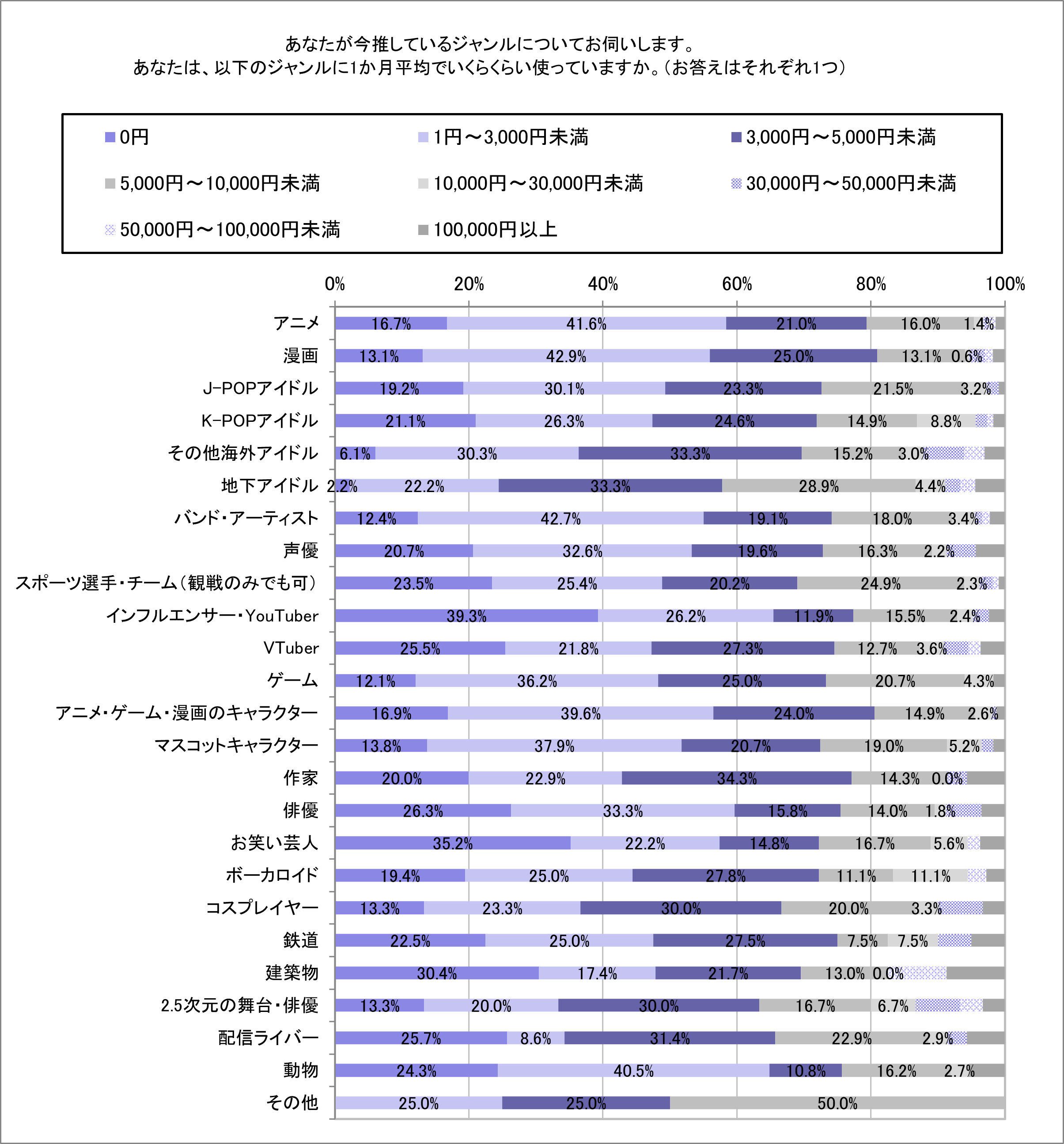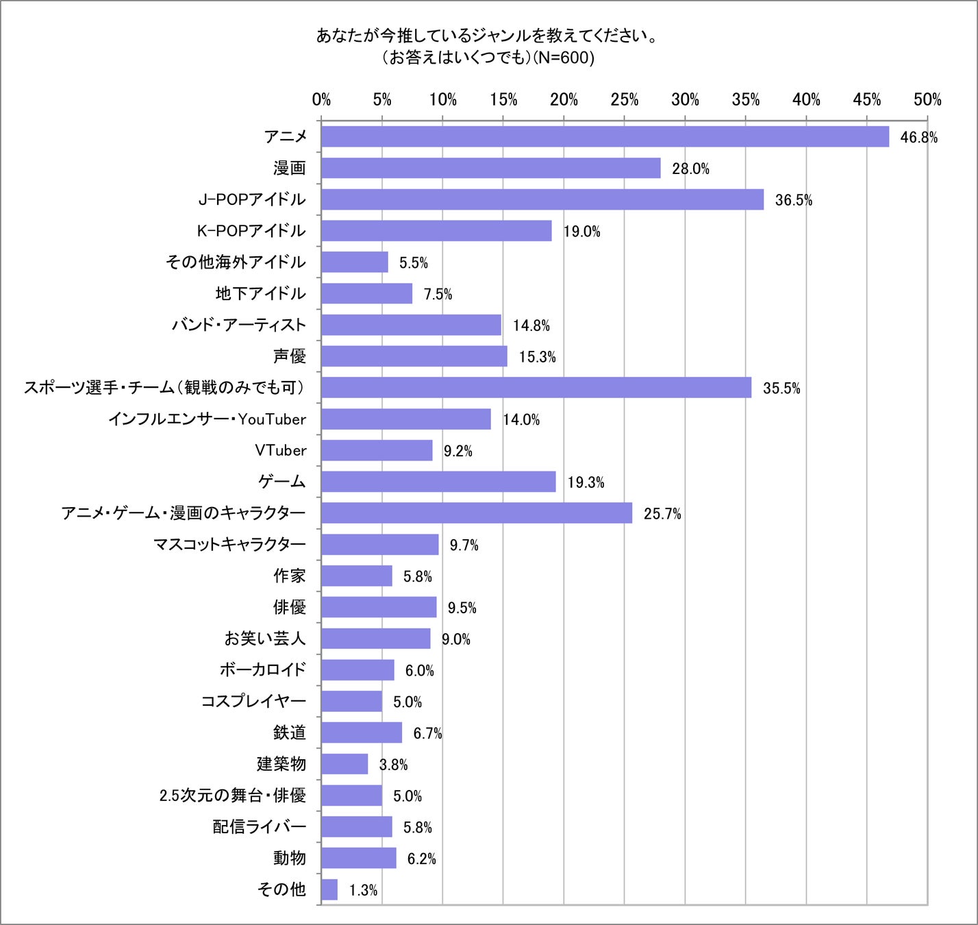 ※1…本項目でのアイドルジャンルにはJ-POPアイドル/K-POPアイドル/海外アイドル/地下アイドル』推しの方、アニメジャンルには『アニメ/漫画/声優/アニメ・ゲーム・漫画のキャラクター/2.5次元の舞台・俳優/ボーカロイド』が推しの方、スポーツジャンルには『スポーツ選手・チーム』が推しの方を含みます。