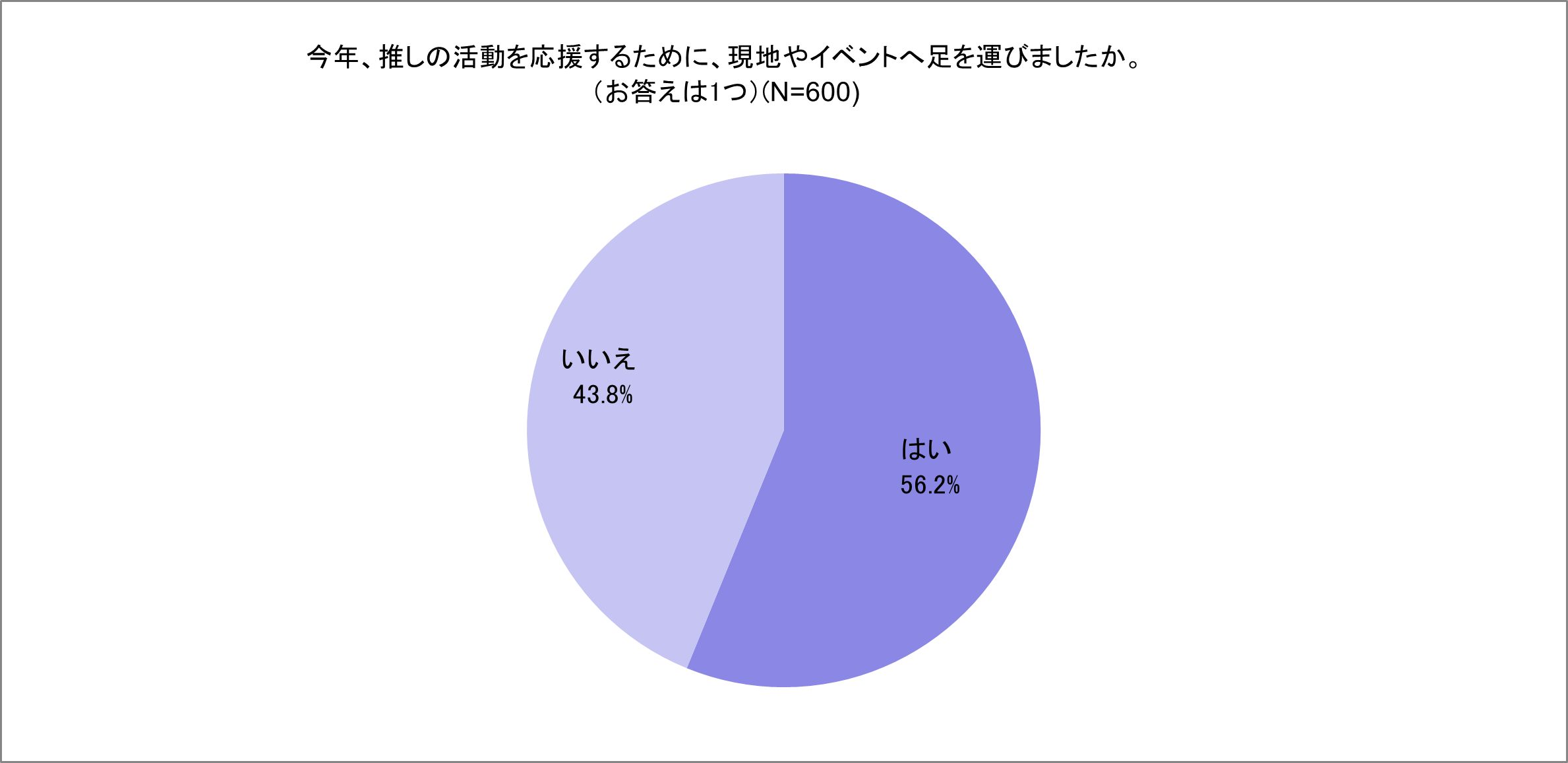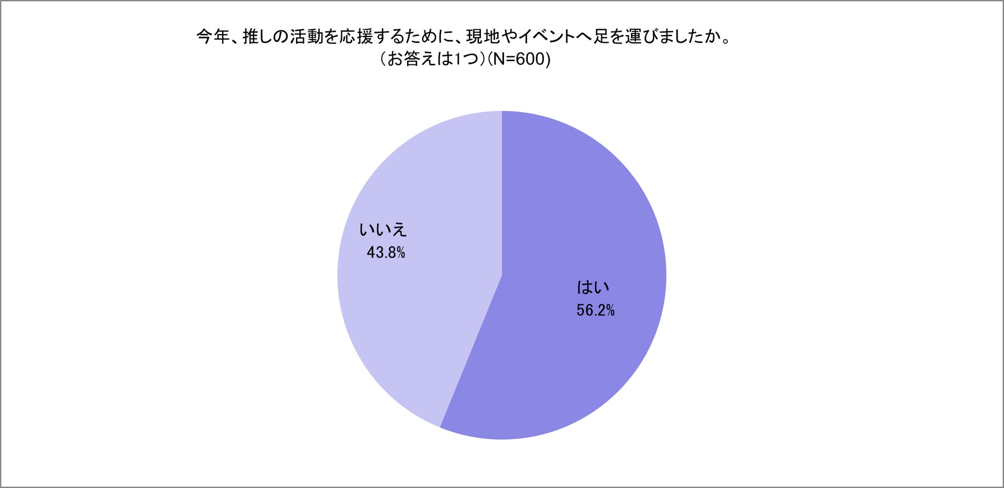 ● 今年は実に半数以上の人(56.2%)が推しの活動を見に現地へ足を運んでいると判明。