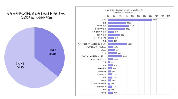 ● 推しがいる人のうち3人に1人(35.8%)が今年から推し始めたものがあると回答
