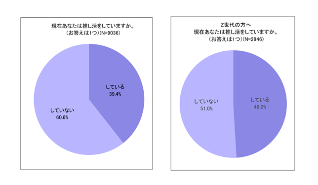 全体の約4割(39.4%)、Z世代の約半数(49.0%)が推し活をしていると回答。