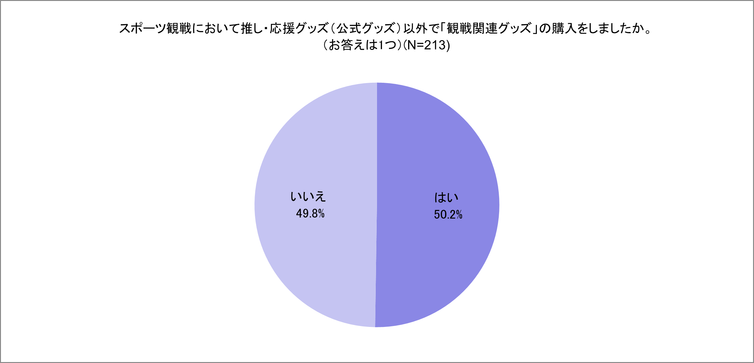 さらに半数以上(50.2%)が公式以外の「観戦関連グッズ」を購入しており、具体的には「タオル(41.1%)」「Tシャツや動きやすい服装(34.6%)」などの回答が見られスポーツ観戦をさらに楽しむためのグッズを充実させるファンが多数いることと考えられます。全体を通して現地でのスポーツ観戦はその時間をさらに充実させたり生で見る試合に価値を感じる「体験価値型」とスポーツに推しを見いだす「推し型」に分かれると考察できます。