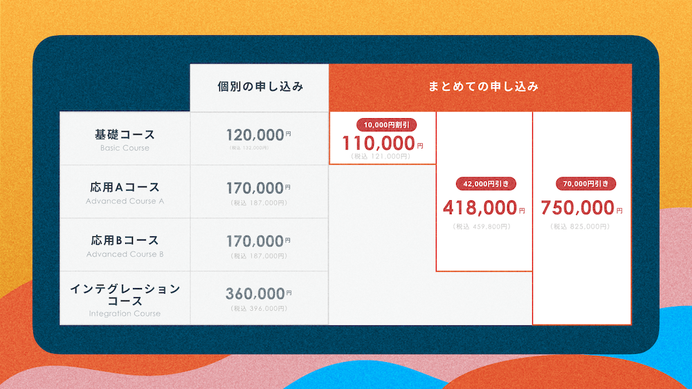 基礎コース〜インテグレーション・コース一括 | 受講料30,000円引き |