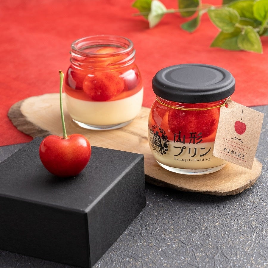 上山市内の農園で生育した超大玉新品種“やまがた紅王”を3粒使用し、さくらんぼそのもののフレッシュ感を損なうことなく素材本来の甘さやみずみずしさとプリンのおいしさを調和した。プリン内のさくらんぼソースにおいても、やまがた紅王のみずみずしさという特徴を考慮し、通常の生さくらんぼプリンで使用しているソースに改良を施した特別仕様の新たな味わいとなっている。