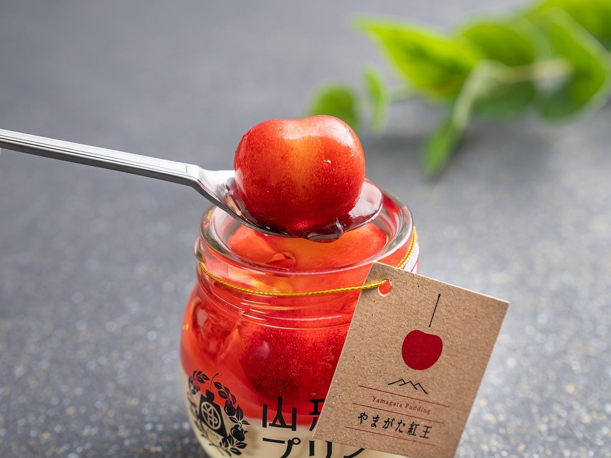 さくらんぼ王国・山形が20年余りの歳月をかけて開発した超大玉新品種"やまがた紅王"を使用した新商品「やまがた紅王プリン」が明日 17日より店頭販売開始。