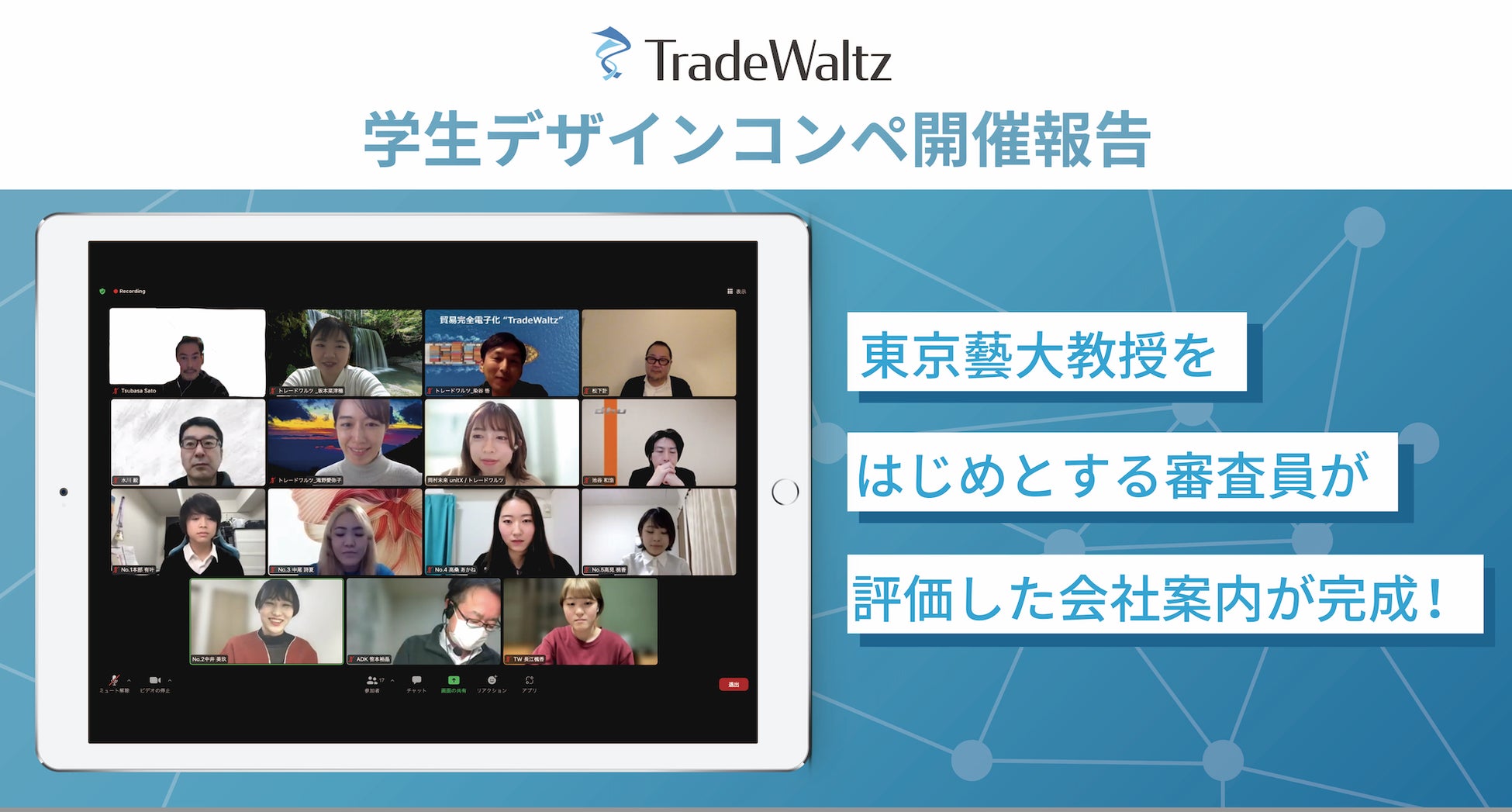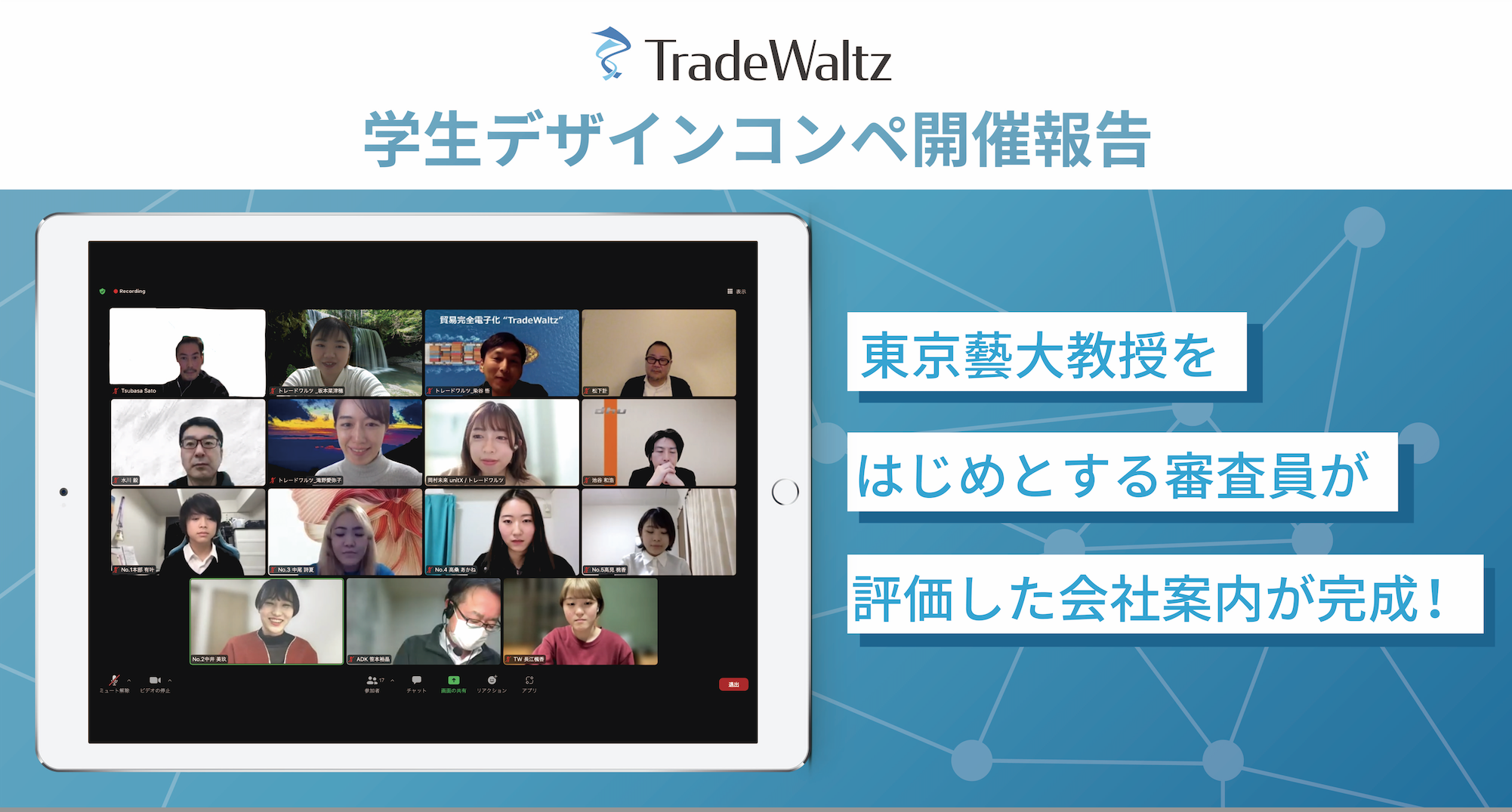 現在、政府、民間、学術界のALL JAPANの体制にてトレードワルツは世界に先駆けてサービス展開をしておりますが、この取組は今の経営陣が牽引する期間だけでなく、10-20年後も継続的に行う必要があります。これからを担う若い世代と共に貿易の未来を作り上げるため、若い世代へ私たちの取組に関与し、関心を高めて頂くため、今回、学生限定デザインコンペを開催しました。
