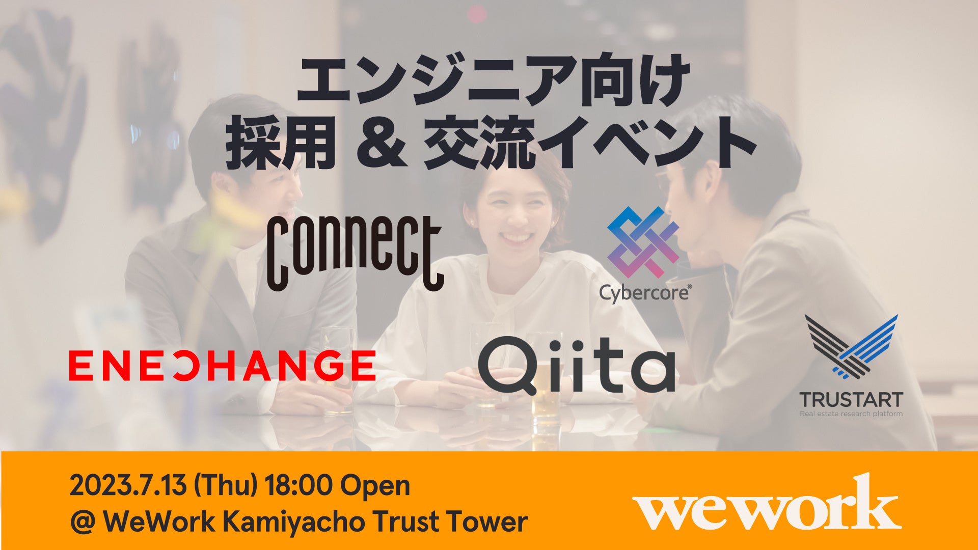 WeWorkは多様な人材が集まるコミュニティとして、エンジニアを募集しているWeWork入居企業6社による合同会社説明会&フリー交流イベントを開催いたします!