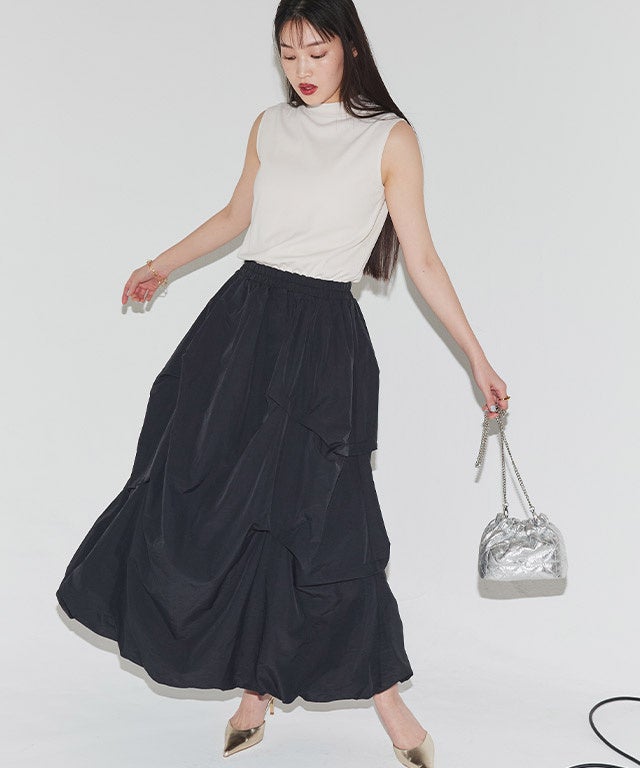 ベーシックアイテムに程よいトレンド感と女性を綺麗にみせるフェミニンさを表現し、プライス・品質・着回し力を軸にコスパを感じられるアイテムを展開しています。