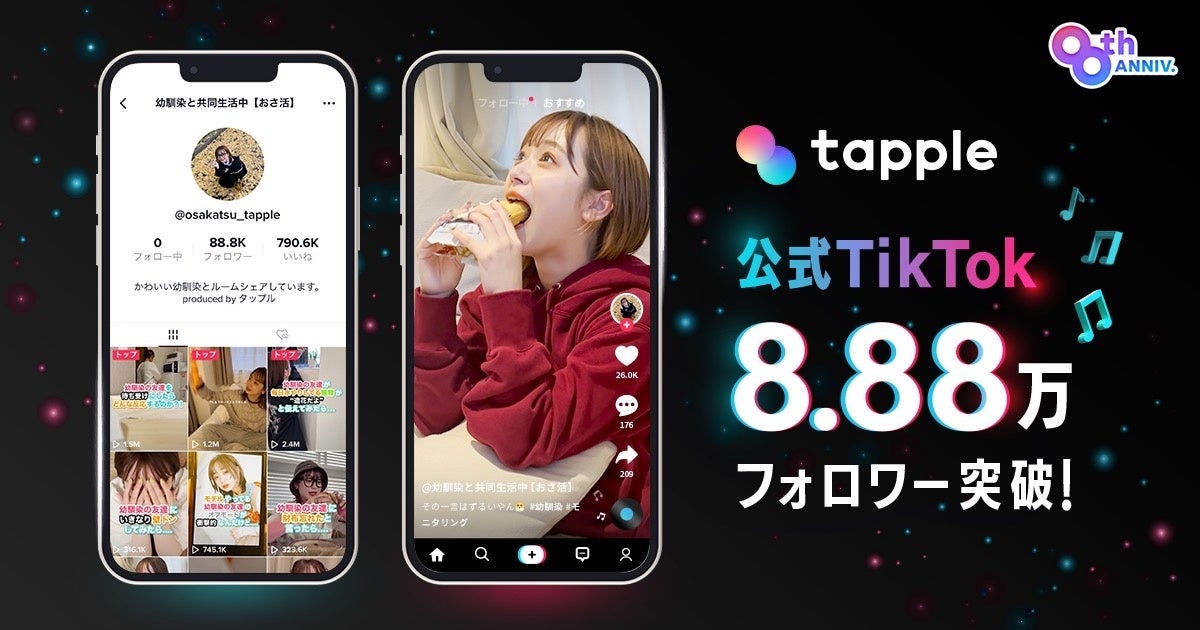 僕と私と株式会社、100万回再生連発の“恋したくなる”タップル公式TikTok「おさ活」をプロデュース!