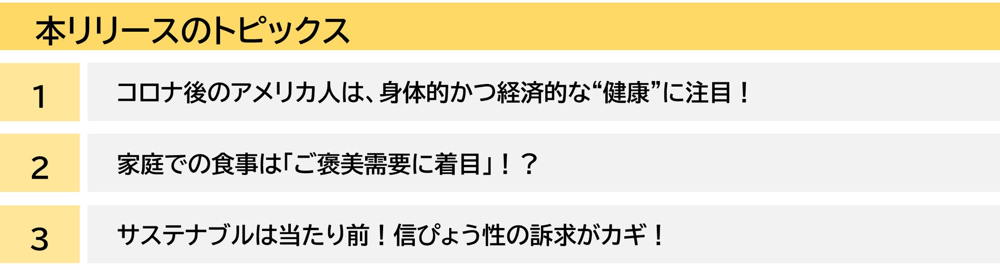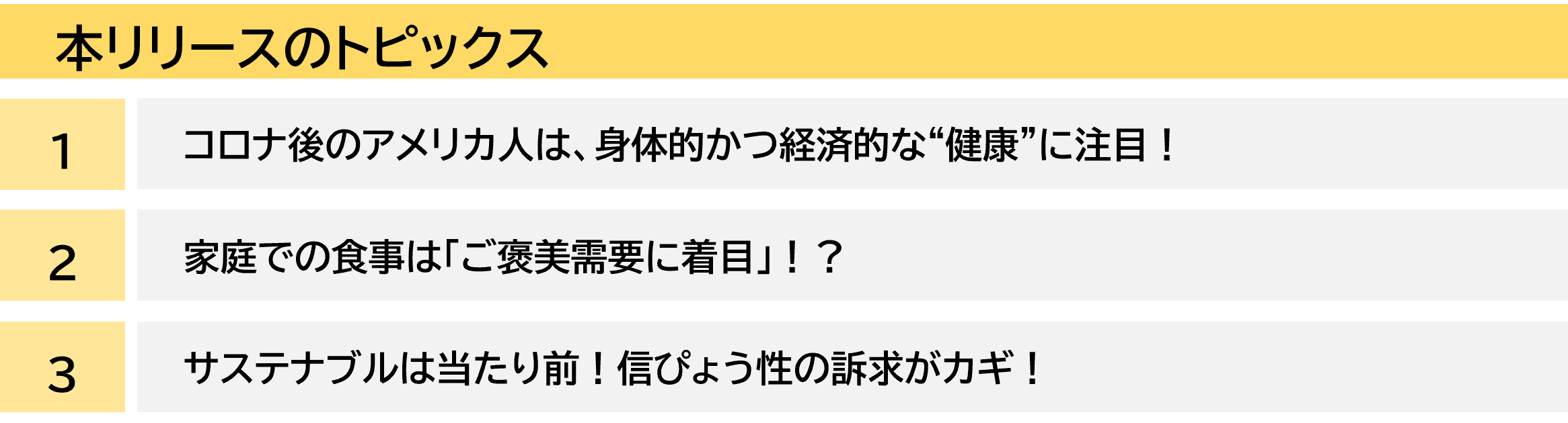 TOPIC1:コロナ後のアメリカ人は、身体的かつ経済的な“健康”に注目!