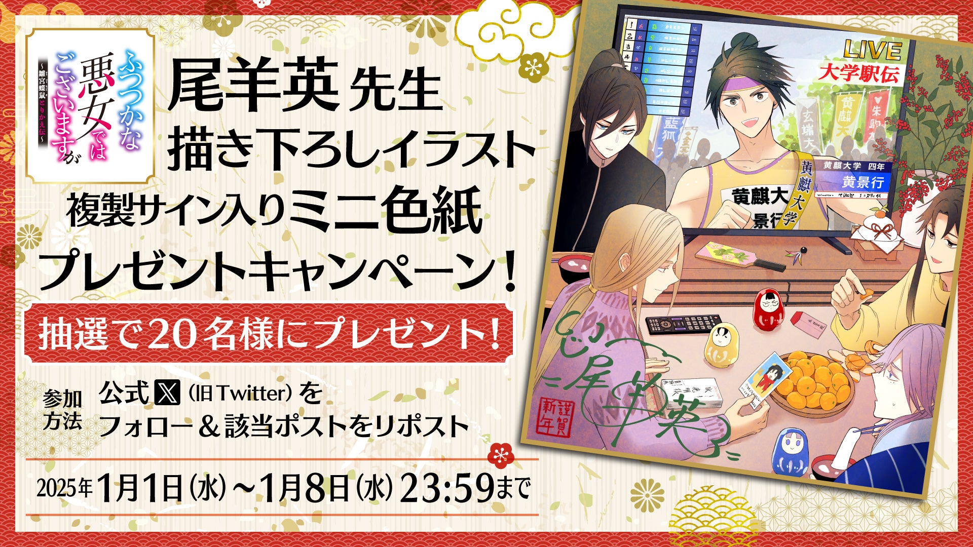 また、『ふつつかな悪女ではございますが~雛宮蝶鼠とりかえ伝~』公式Xアカウントでは、今回描き下ろされたイラストを使用した複製サイン入りミニ色紙が抽選で20名様にプレゼントされるキャンペーンを実施中です。この機会にぜひご参加ください。
