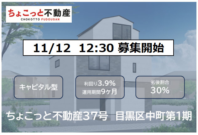不動産クラウドファンディング『ちょこっと不動産37号』11⽉12⽇(火)先着順にて募集開始!