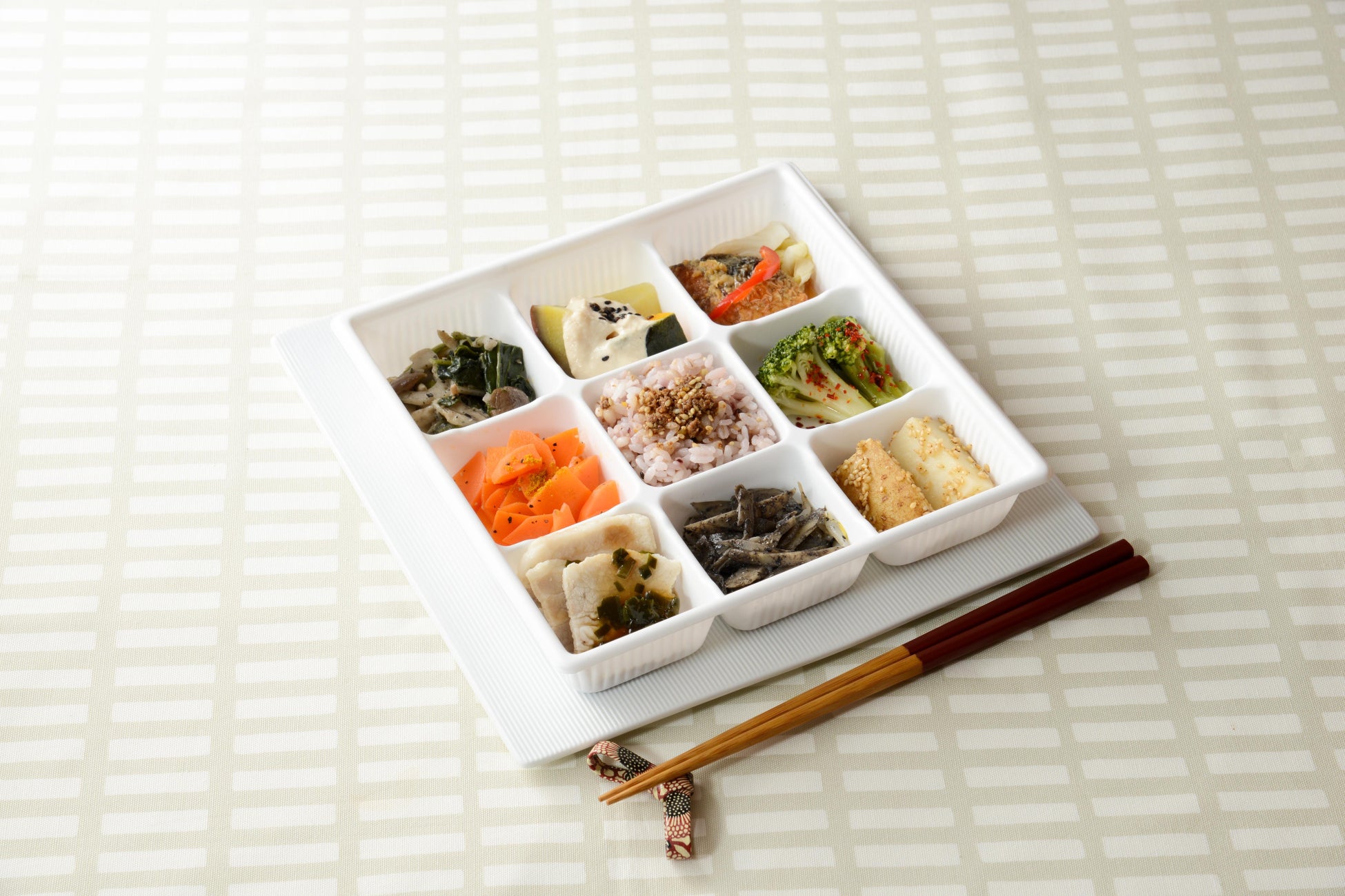 goma toで人気の「goma toプレート」をイメージした9マスのお弁当。すべての料理にごまやごま由来の