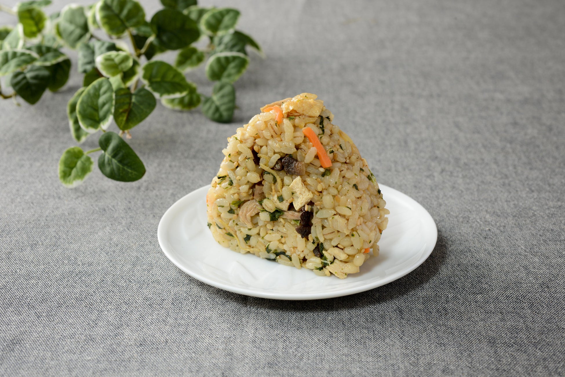 鶏肉ときのこのもち麦入りおにぎり(ごま油仕立て)