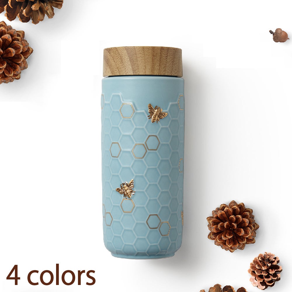 優れたクラフトマンシップが発揮され、六角形のハチの巣と金色の小さな蜜蜂が立体的に浮き上がるデザインが中心となっています。さえらに特許技術の高温焼成セラミックによって水にミネラルウォーターのような甘みが加わり、今までとは異なるマグボトル体験をもたらします。容量は350mlで、開口部は丸みのあるエッジで口当たりが良く、広口で飲み物を入れやすく、洗浄・乾燥にも便利なため、快適かつ衛生的です。全ての材料は食品安全基準に準拠しており、プラスチック製コップの利用による環境破壊をなくし、紙コップ等の「使い捨て」による資源の無駄もなくすことができます。