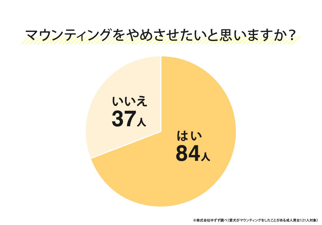 「愛犬がマウンティングをしたことがある」と答えた121人の飼い主さんを対象に、「マウンティングをやめさせたいと思いますか?」というアンケートを実施したところ、7割近い飼い主さんが「やめさせたい」と回答しました。