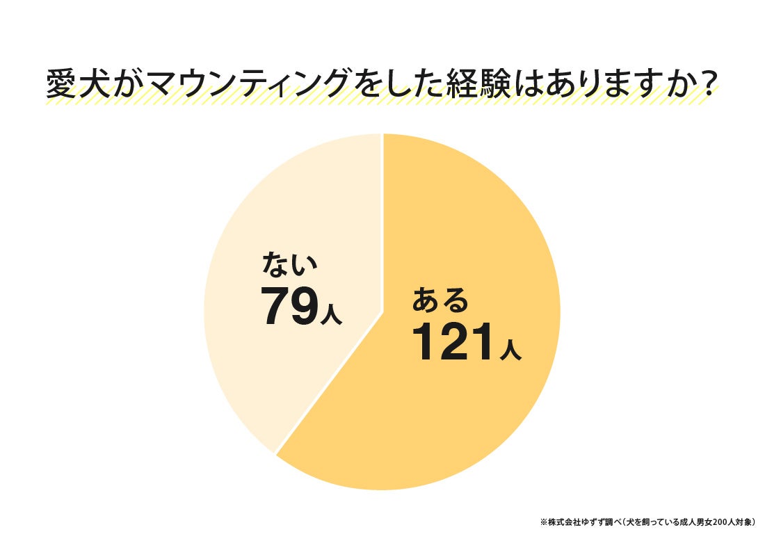 犬を飼っている成人男女200人に「愛犬がマウンティングをした経験はありますか?」というアンケート調査をしたところ、約6割の人が「愛犬がマウンティングをしたことがある」と回答しました。