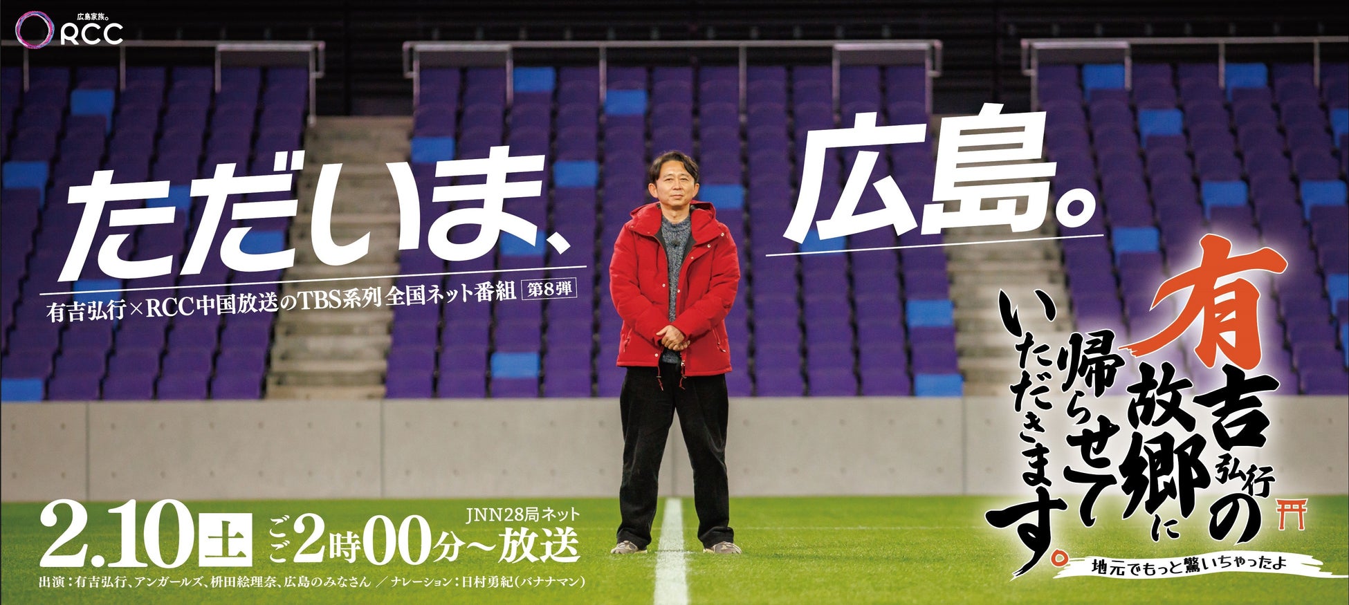 RCC中国放送(本社・広島市)は、JNN28局ネット「有吉弘行の故郷に帰らせていただきます。~地元でもっと驚いちゃったよ~」を制作し、2024年2月10日(土)午後2時から全国放送します。