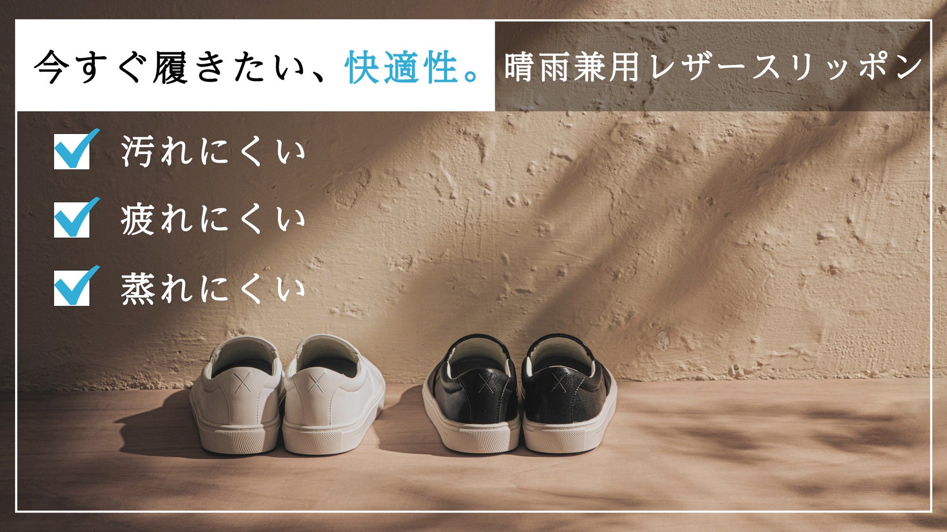 履き続けたくなる機能と快適さ!服装を選ばないシンプルデザインの晴雨兼用レザースリッポン!【ScooterZero】