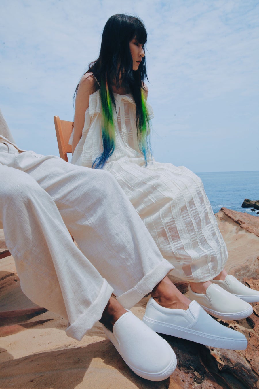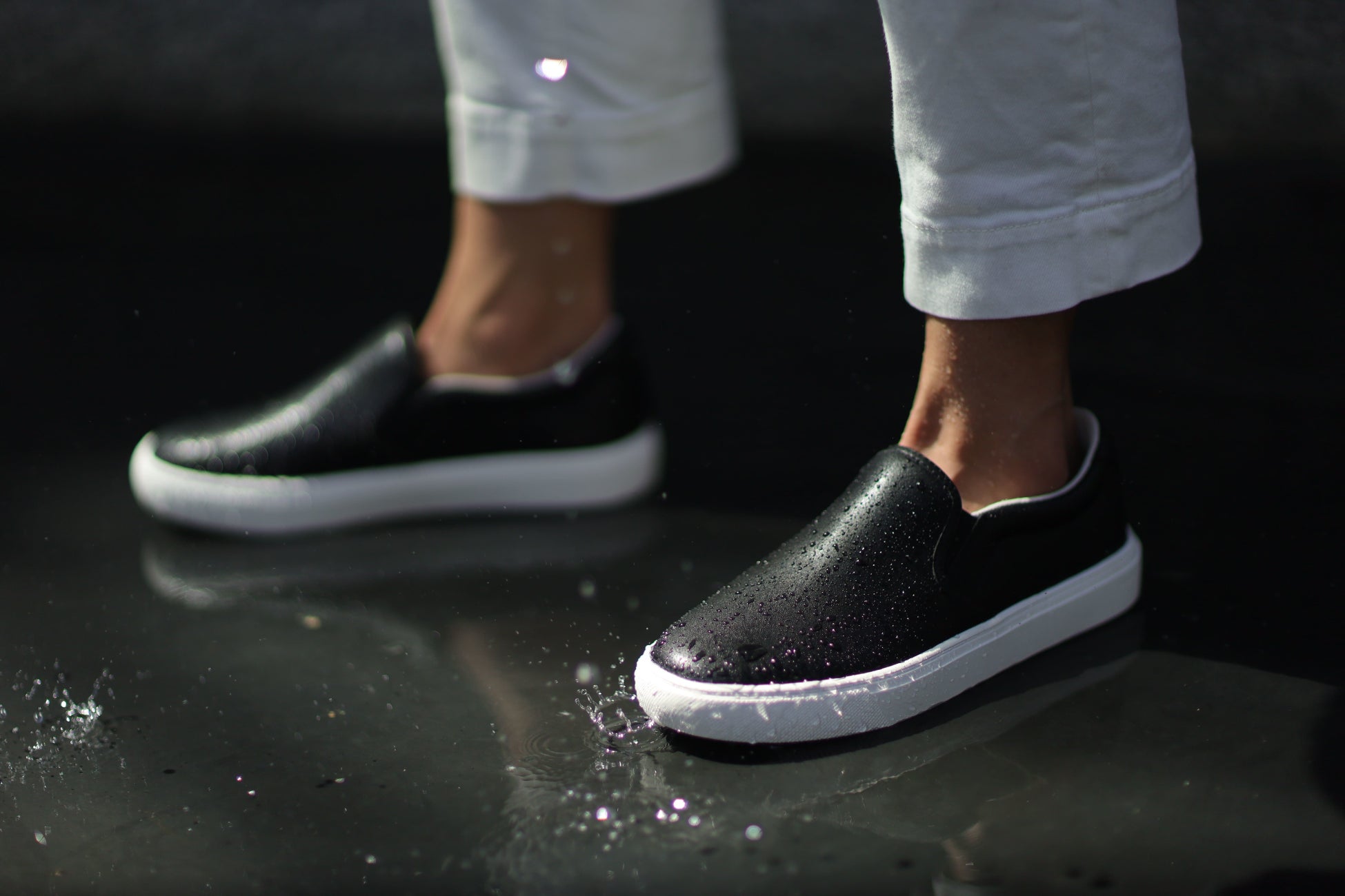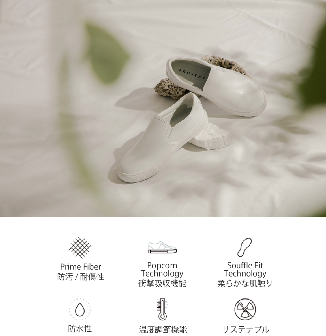 梅雨での着用も問題ありません。着用者がどこへ行っても靴を常に新品のような状態で保つ、まさに白すぎるスニーカーが誕生いたしました。