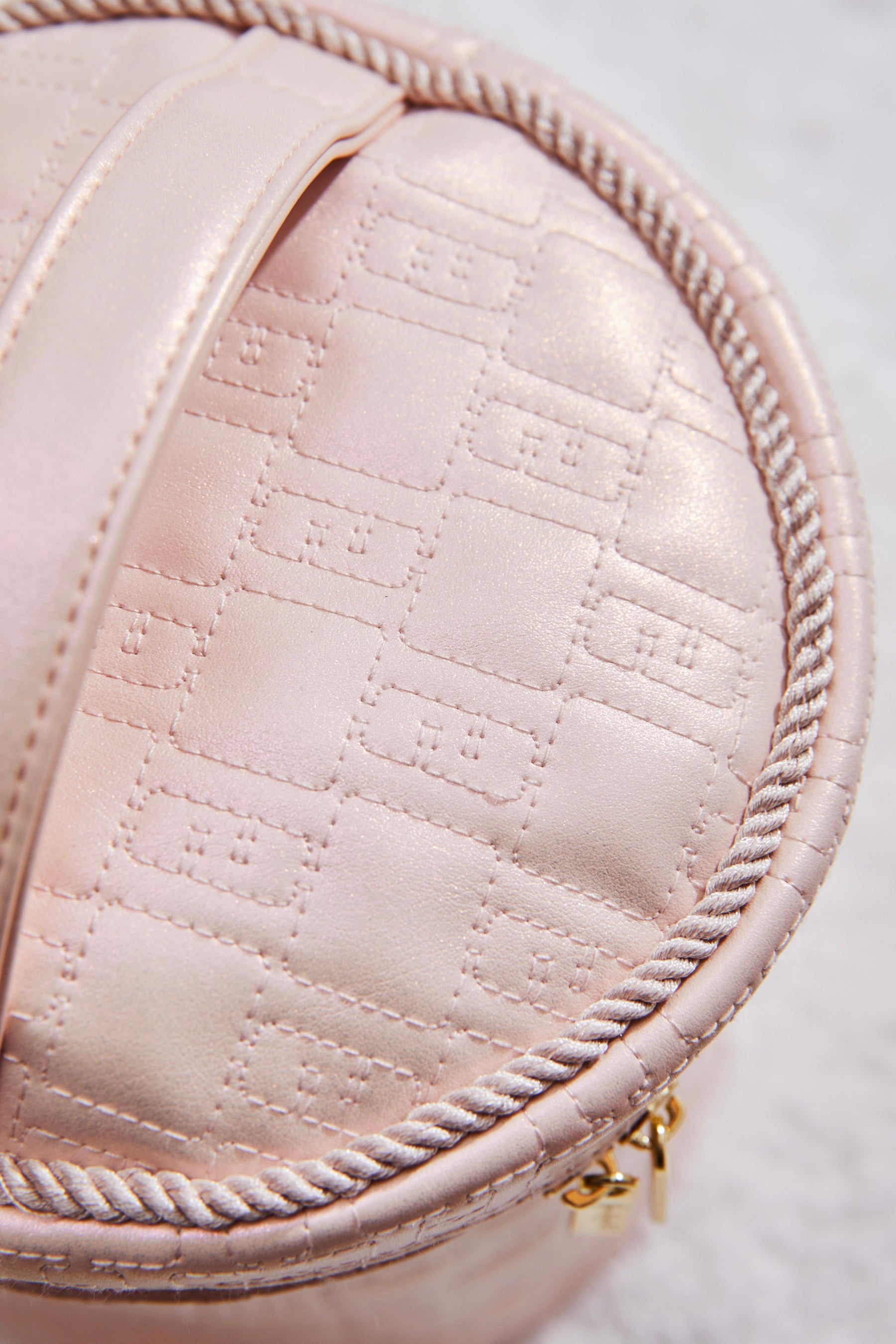 キルティング加工を施したヴィーガンレザーのオリジナルバニティポーチは、「H」のモノグラムがポイント。ホリデーシーズンの煌めきを宿したオーロラパールコーティングで華やかな印象に仕上げました。使い勝手のよい内ポケットなど、細部にまでこだわりが詰め込まれた一品です。