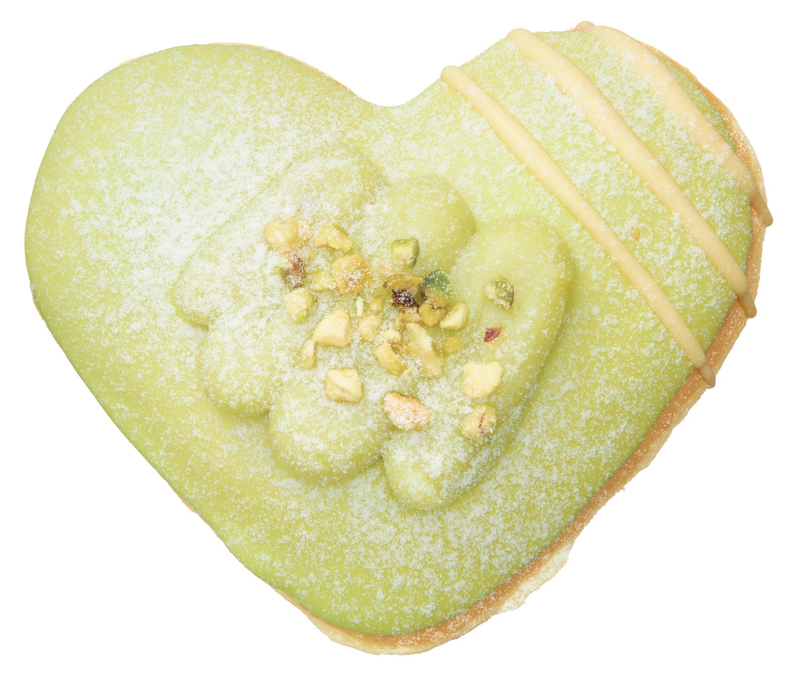 | 『グリーン ピスタチオ』 【販売期間】ハート型:2022年 2月8日(火)~2月14日(月) リング型:2022年 1月12日(水)~2月下旬(予定) ※ハート型販売期間を除く 【販売価格】291円(イートイン297円) パステルグリーンチョコで包んだハートに、ピスタチオクリームをトッピング。 カットしたピスタチオの食感が風味を深め、コクとまろやかな甘みが口の中にふわっと広がります。 ライトイエローのチーズチョコでカラーアクセント。パウダーシュガーで、ふんわりやさしく仕上げました。 |