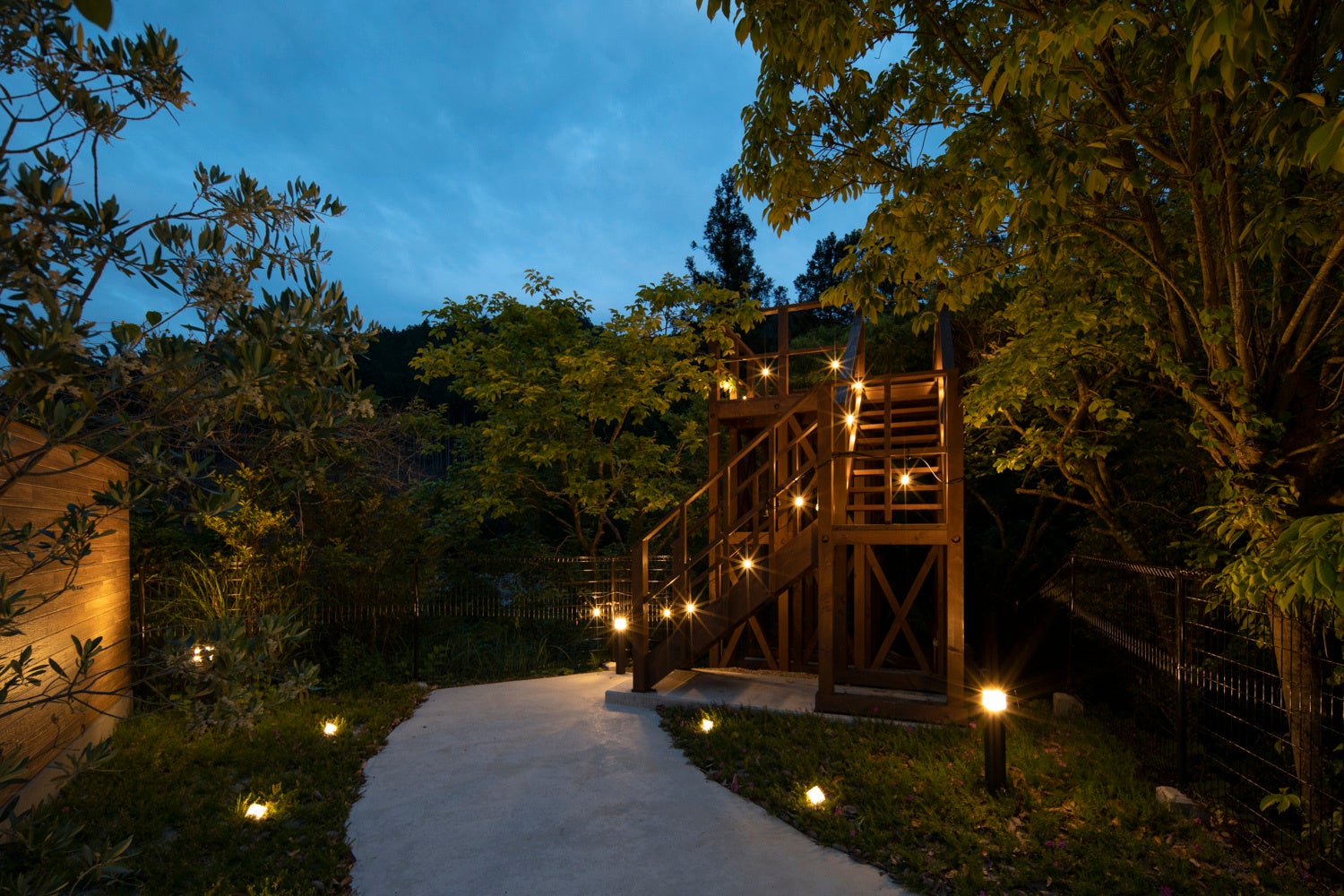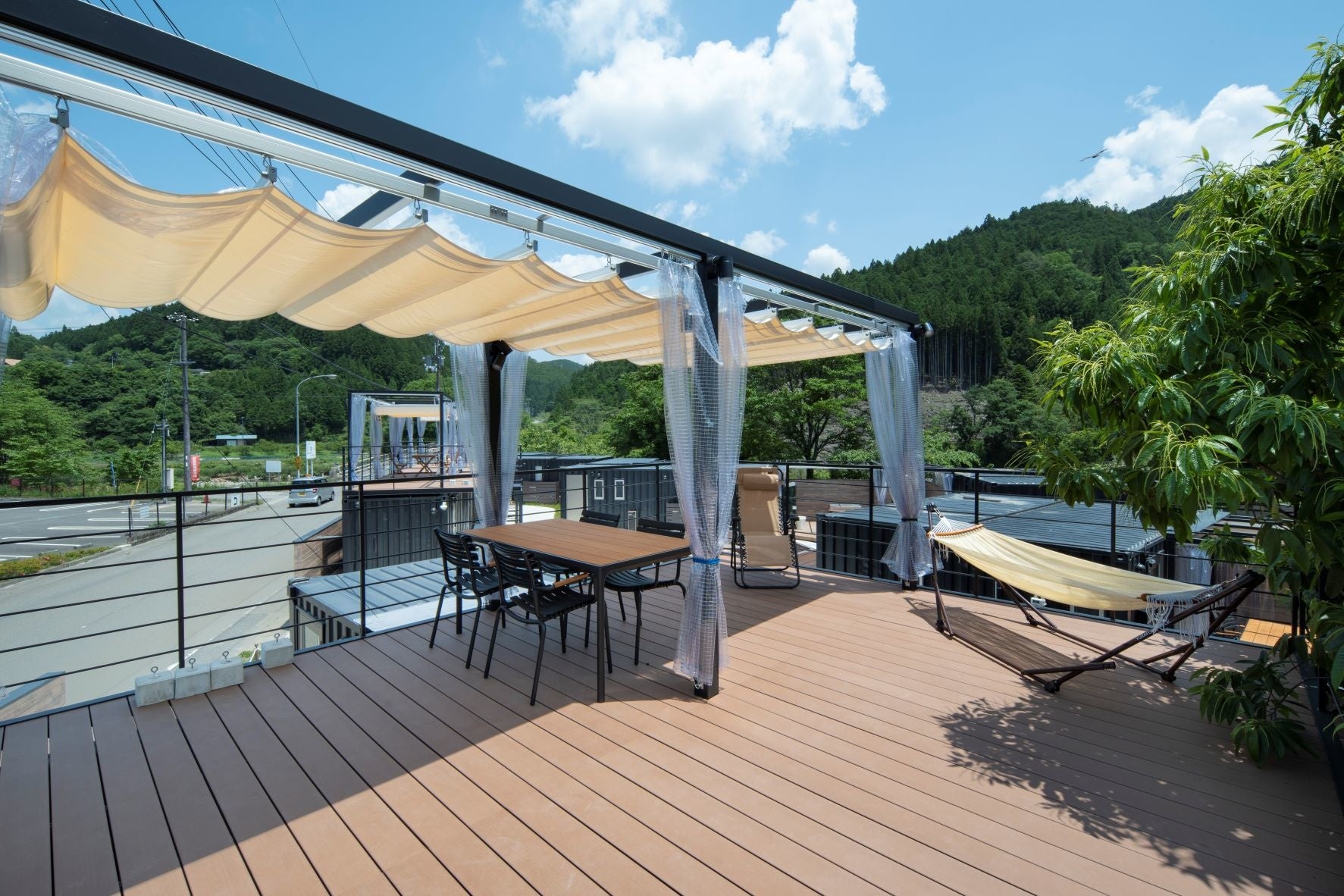 熊野古道の主要参詣道「中辺路」沿いに泊まり歩ける宿を計4カ所作る計画で、2カ所目として、2022年4月28日に開業したのが「SEN.RETREAT CHIKATSUYU」。コンセプトは「遊ぶ、微笑む、そしてつながる宿」。バーベキューができるプライベートガーデンや、焚き火を囲めるテラス、宿泊客自身で生地からこねて焼けるピザ窯などを備えています。非日常にワクワクしたり、気の置けない仲間や家族とゆったり過ごしてホッとしたり、リラックスできる空間となっています。また、コンテナ1棟を1つの客室としているため、外から直接部屋に出入りでき、密を避けられます。「熊野古道を訪れる観光客=トレッキング目的のみ」という現状を変えるべく、さまざまな観光目的の方に楽しんでいただける宿を目指します。