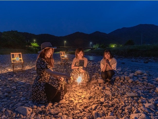 9月中にお泊まりのお客様には手持ち花火のセットをプレゼント。ホテル横を流れる日置川の河原(お客様専用駐車場)にウッド調のテーブルとテントをご用意しています。田舎の風情あふれる開放的な空間で、花火の小さなきらめきに癒されるでしょう。