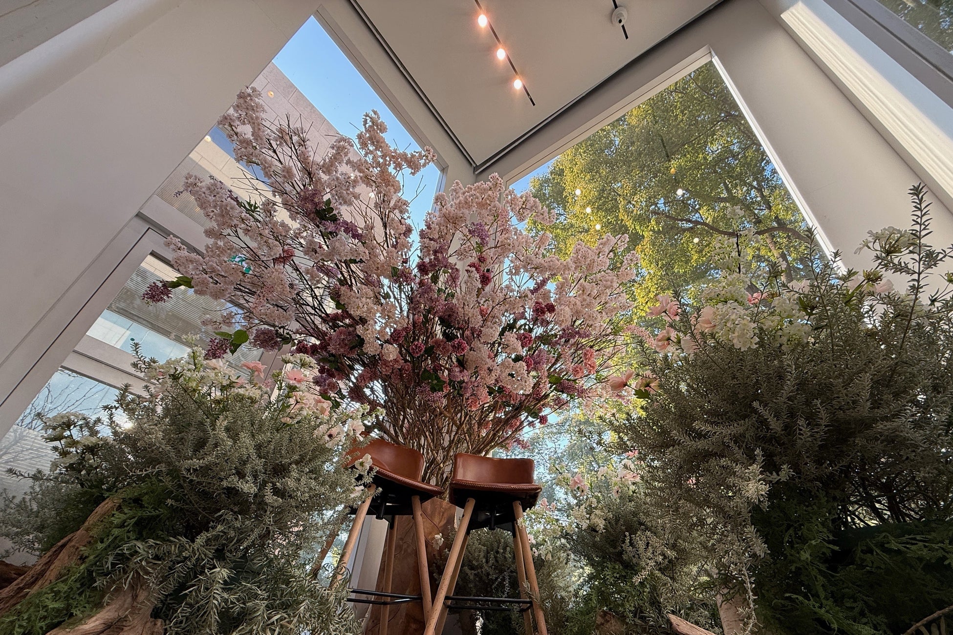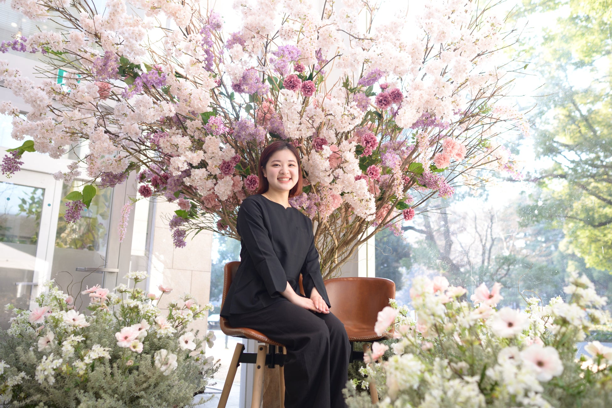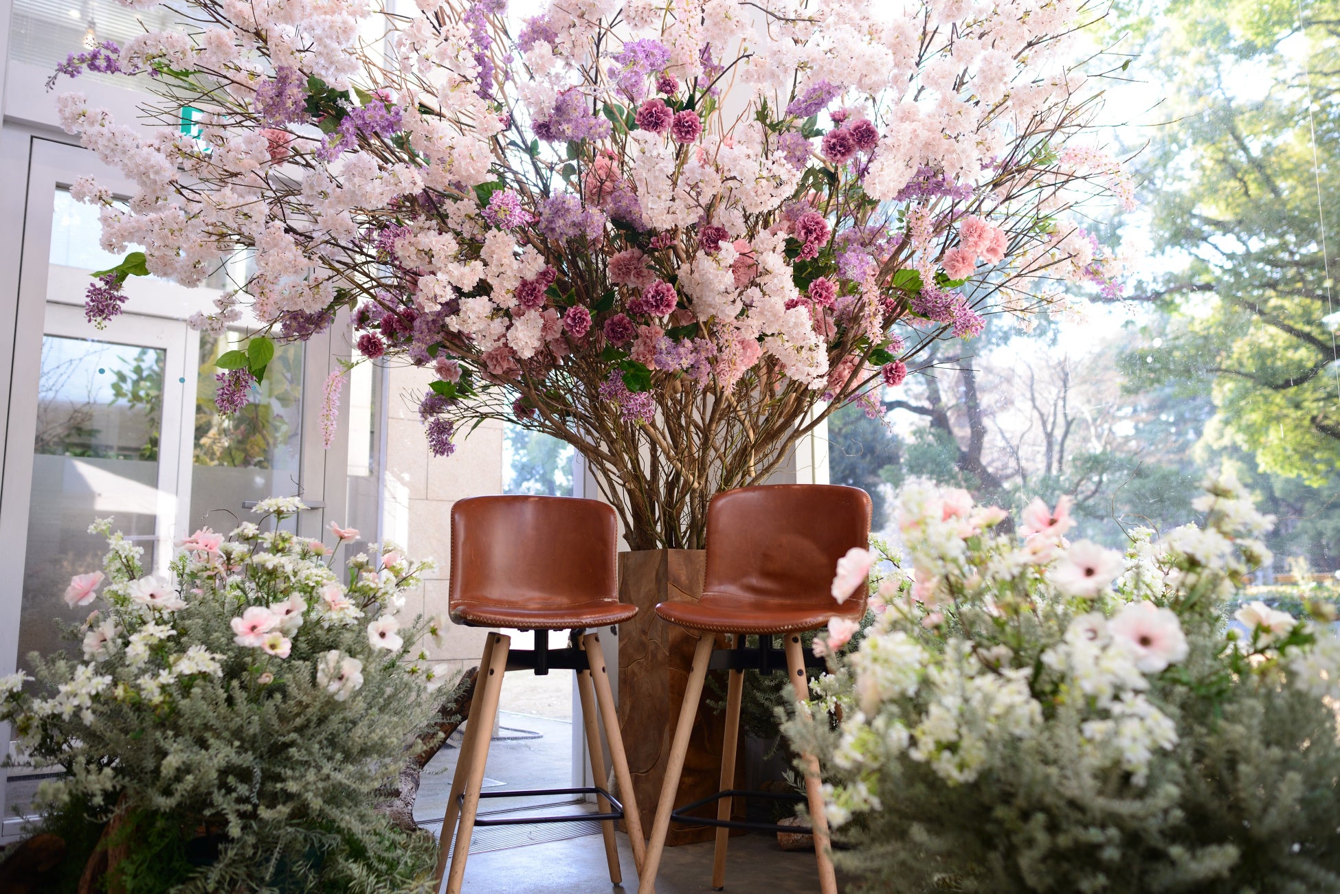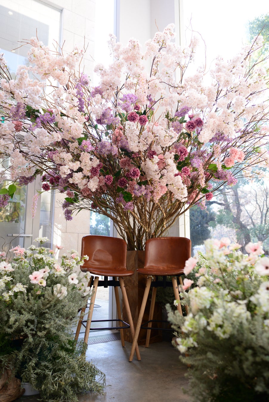 第1弾の今回は、普段は店舗に所属し、お客様へ豊富な知識で季節の花々をご案内するフローリスト3名が装飾を手掛けました。ライラックなど春の花々をミックスで飾り付けた圧巻の桜のオブジェは、ひと足早い春を感じさせるとともに、訪れた方々をやわらかな笑顔にしてくれます。