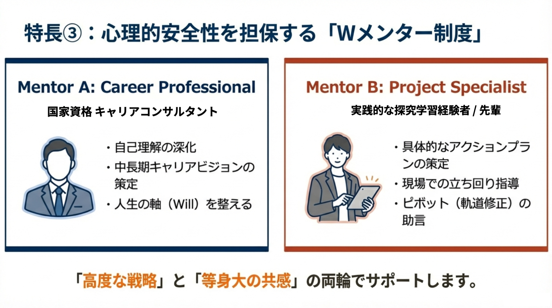 2. 「次、何しよう?」の迷走を防ぐ、プロ×経験者の「Wメンター制度」