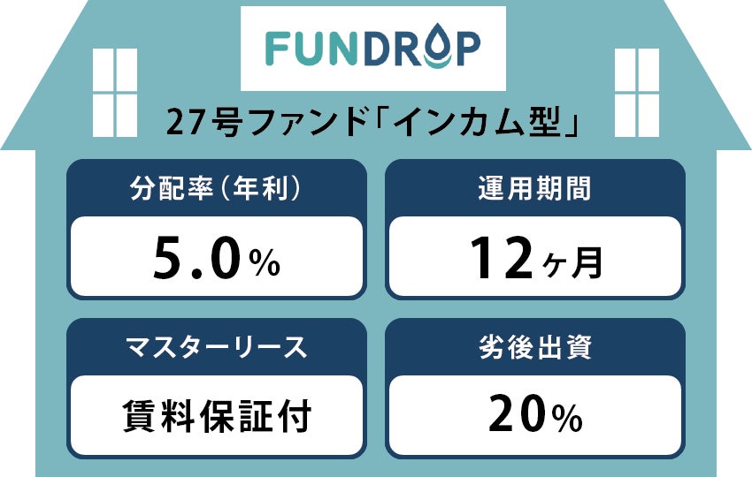 FUNDROP 27号ファンドは、利回り(年利)5%、賃料保証付きにて運用