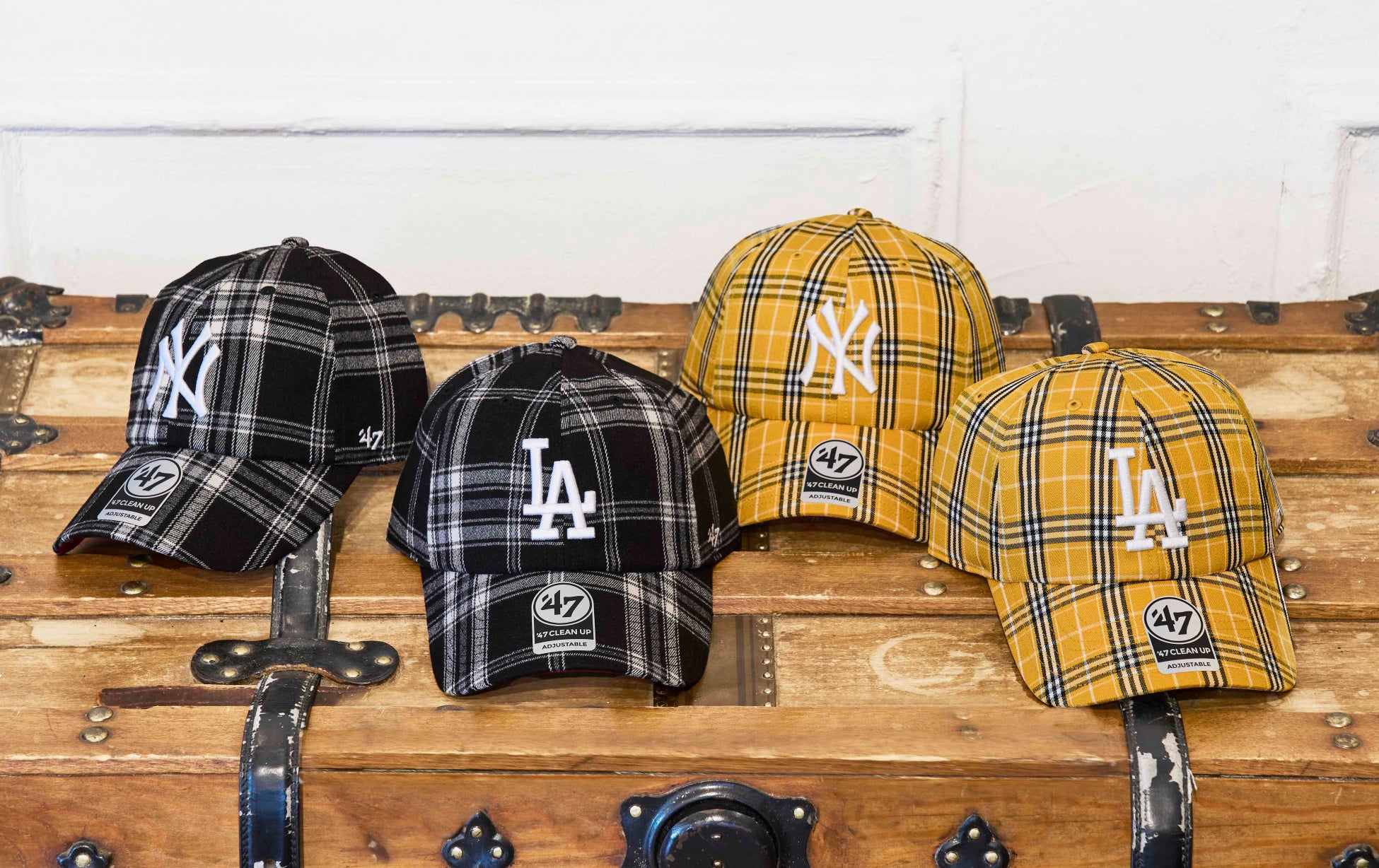 単色のカラーバリエーションが豊富な’47 CLEAN UPにチェック柄が初登場!パッと目を引く主役級デザインキャップは、あえて白シャツなどのシンプルなウェアやジャケットと合わせることで、ハイセンスなストリートファッションのスパイスに。華やかなイエローとシックなブラックの2パターン展開です。