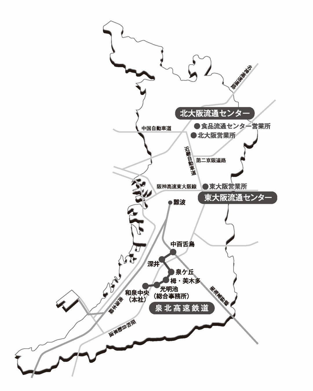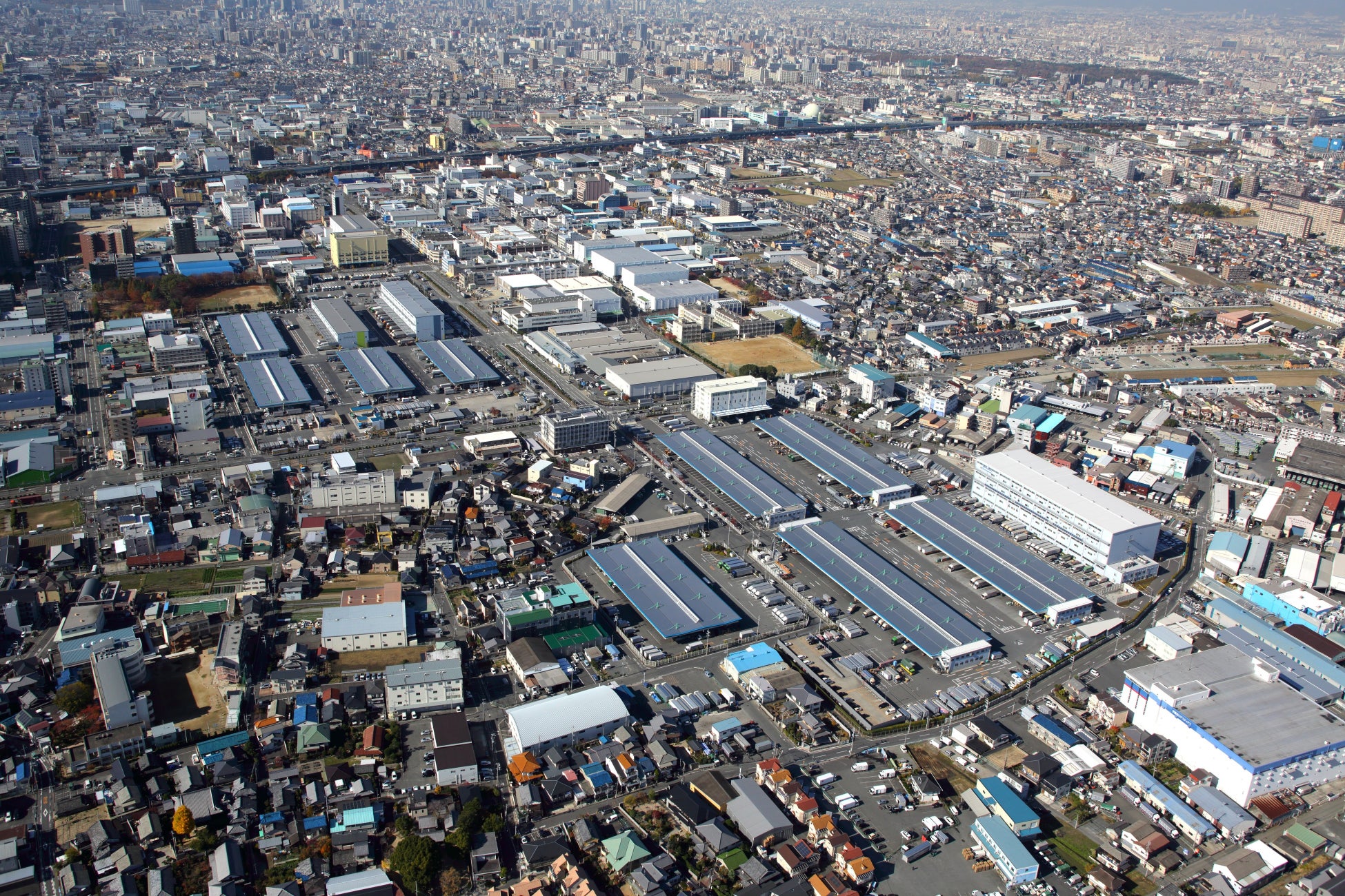 北大阪流通センター及び東大阪流通センターは、高度経済成長期に自動車交通の激増や、人口・産業の都心部への過度の集中により生じる流通機能や都市機能の低下を解決するために、都市周辺部の交通要衝地に整備された一大流通拠点で、トラックターミナル※1、流通倉庫※2、配送センター等※3が一体的に立地しており、スムーズな物流ネットワークを実現しています。