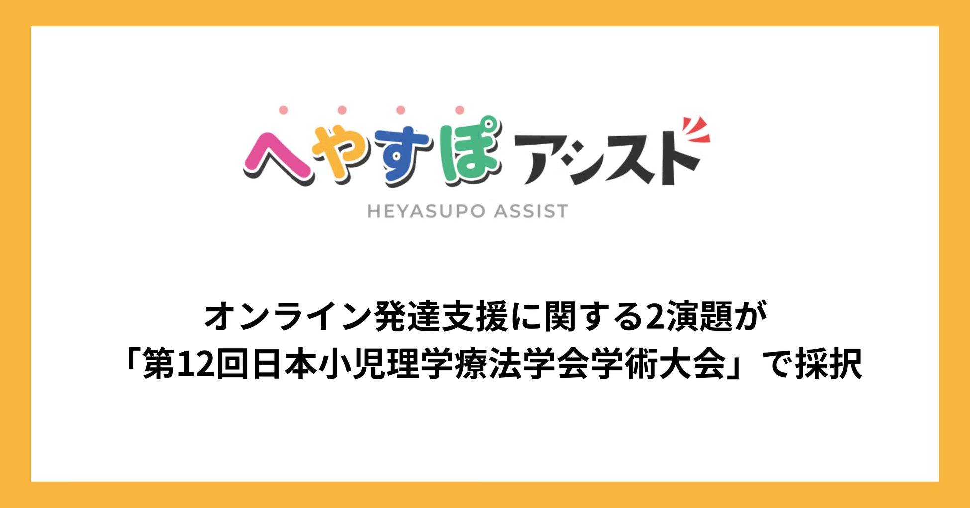 「へやすぽアシスト」、オンライン発達支援に関する2演題が学会採択、「第12回日本小児理学療法学会学術大会」で研究発表を実施