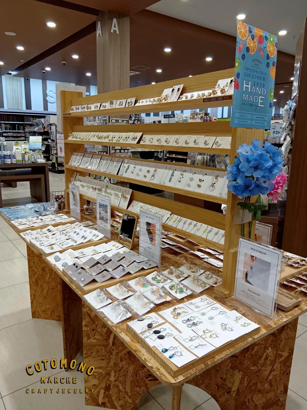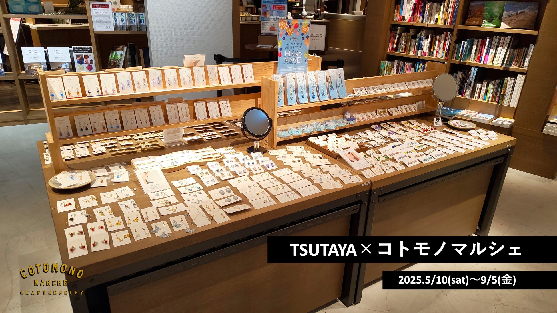 株式会社storyteller(本社:東京都狛江市、代表取締役:新堀健太郎)は、カルチュア・エクスペリエンス株式会社(本社:神奈川県横浜市、代表取締役社長:鎌浦 慎一郎、以下「CX」)が運営する蔦屋書店及びTSUTAYA BOOKSTOREにて、コトモノマルシェバイヤーがセレクトしたハンドメイドアクセサリーを提案する企画「TSUTAYA×コトモノマルシェ」を開催中。計5店舗にて2025.5/10(土)〜夏に向けたアクセサリー、約40ブランドが店頭を彩ります。