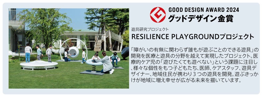 株式会社ジャクエツ(本社:福井県敦賀市/代表取締役社長:徳本達郎)の遊具研究プロジェクト「RESILIENCE PLAYGROUNDプロジェクト」が公益財団法人日本デザイン振興会が主催する2024年度グッドデザイン賞において、特に秀でた20件として選出される「グッドデザイン金賞(経済産業大臣賞)」を受賞しました。