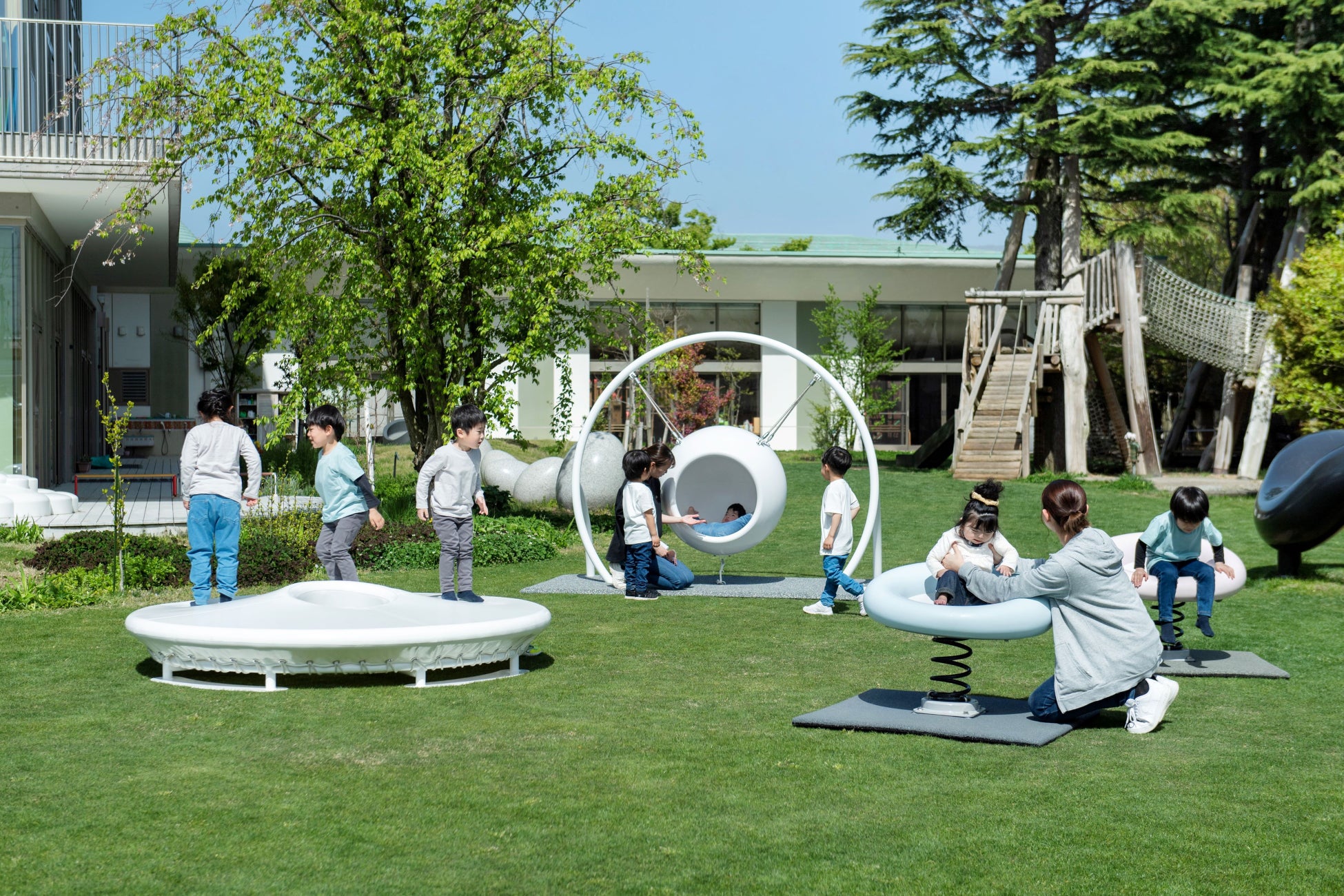 「最も重度な障がいをもつ子ども~健常とされる子どもまでを遊具の対象とする」をプロジェクトの軸に置くことで、「遊びたくても遊べない」という社会の障がいを減らし、自分らしく楽しいと感じられる世界を目標にしました。開発をした3つの遊具は寝たきりの子が一人で乗ることができ、自分自身で動かせる僅かな力によって揺れのフィードバック感などを楽しめるよう設計しています。また色や素材など強い感覚刺激にも配慮しました。その一方で健常とされる子も楽しい遊具であることも並行して検証し、障がい児専用にならないデザインとすることを徹底しました。結果、幼稚園、公園、商業施設など環境を問わず122基の遊具が設置されました。さらにこの遊具の提案は障がい児の受け入れや対応方法に悩んでいた保育施設や行政の後押しにも繋がり始めています。