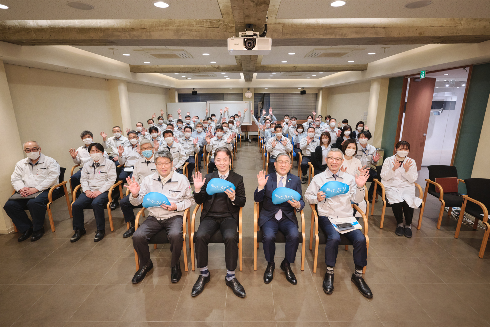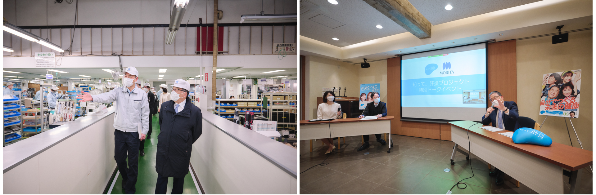 この度2月15日(水)に、「知って、肝炎プロジェクト」肝炎対策広報大使を務める徳光 和夫氏が京都府の歯科・医科医療機器メーカーである株式会社モリタ製作所を訪問し、“ウイルス性肝炎”をテーマに、役員の皆様との対談や、従業員の皆様に向けたトークイベントを実施しました。