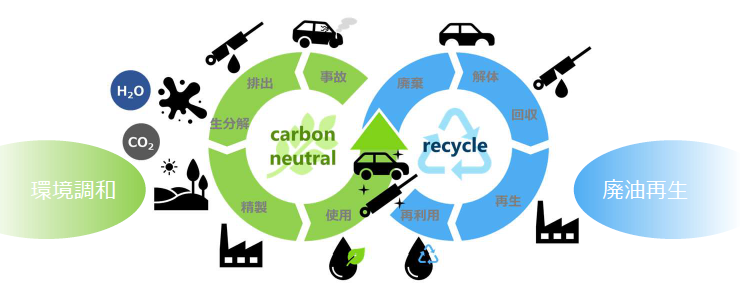 ①天然由来のベースオイルを採用することによるカーボンニュートラルへの貢献
