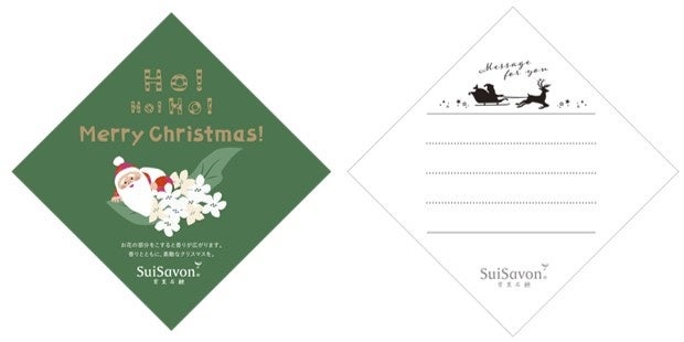 さらにイベント開催中は、クリスマスカードをSuiSavon- 首里石鹸-浦添PARCO CITYギャラリーショップ・POPUPショップまたは、 SuiSavon- 首里石鹸-イーアス豊崎ギャラリーショップにお持ちいただくと、「島の恵みのかけら」(ボタニカルハンドメイド石鹸のピース約2g)をプレゼントいたします。