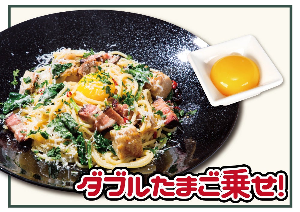 メディアにも取り上げられた人気№1メニュー『究極のぺぺたま!グリルチキンと「下川六〇酵素卵」がのったオイルソース』に「たまご」をプラス!濃厚ぺぺたま!を楽しめます!