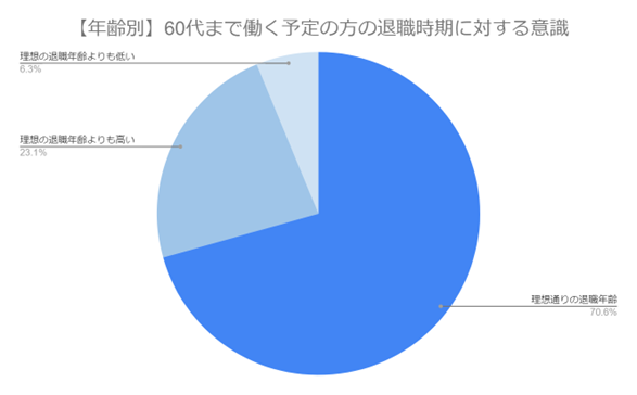 「60代」まで働く予定と回答した160名のうち、「理想通りの退職年齢」と回答した方は7割を超えています。