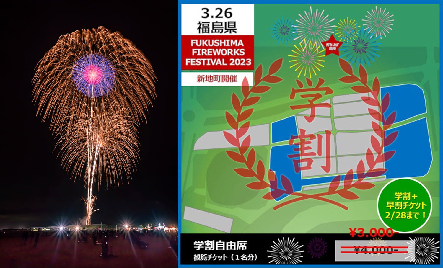 また、2月28日(火)をもって、福島花火大会(最大42%OFF)、三陸花火大会(最大36%OFF)の早割価格が終了となります。期間終了後は福島花火大会では定価(※一部を除く)、三陸花火大会では早割価格に移行となり、10%の割引率となります。