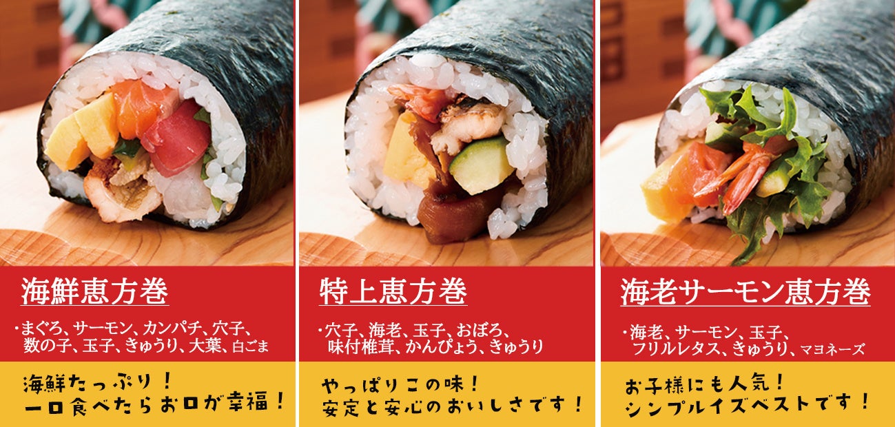 お好みの恵方巻でおいしく楽しく福を招きましょう!
