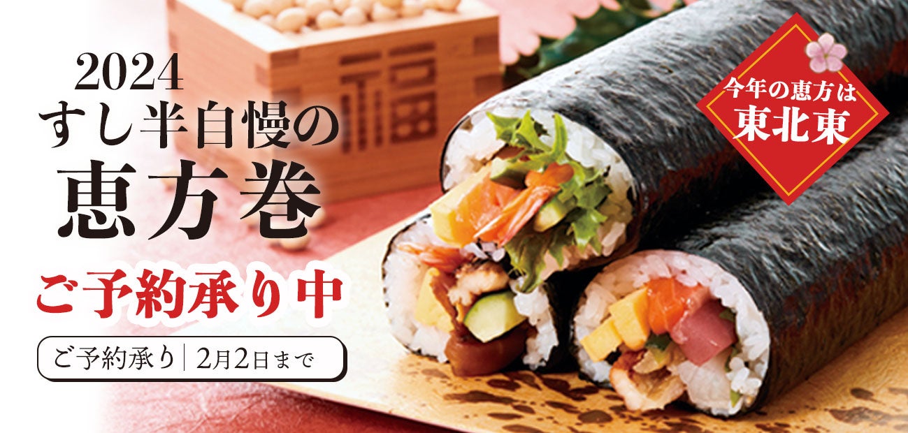 【2024すし半 恵方巻】1月8日からご予約受付開始しました! すし半の丸かぶりで今年も一年幸福祈願!