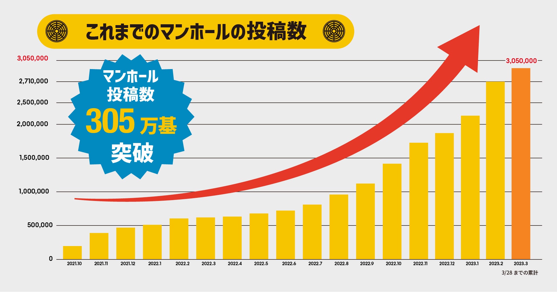 - 市民が集めたマンホール画像は300万枚を突破。日々の投稿数も引き続き増加!