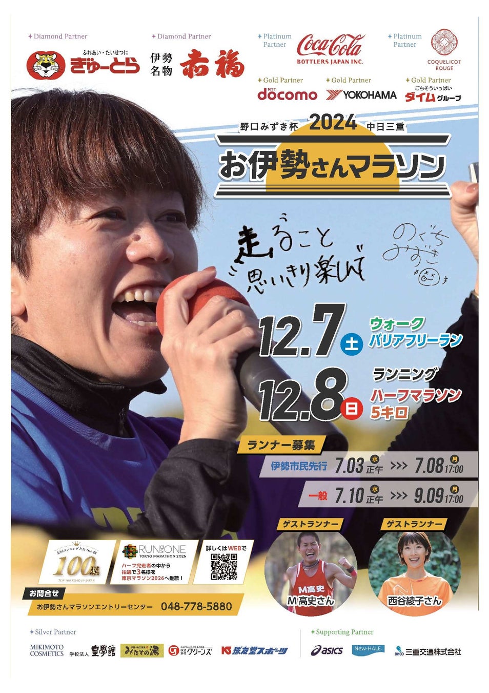 【全国ランニング大会100撰】 野口みずき杯2024中日三重お伊勢さんマラソン(12月開催) 間もなく参加受付開始!