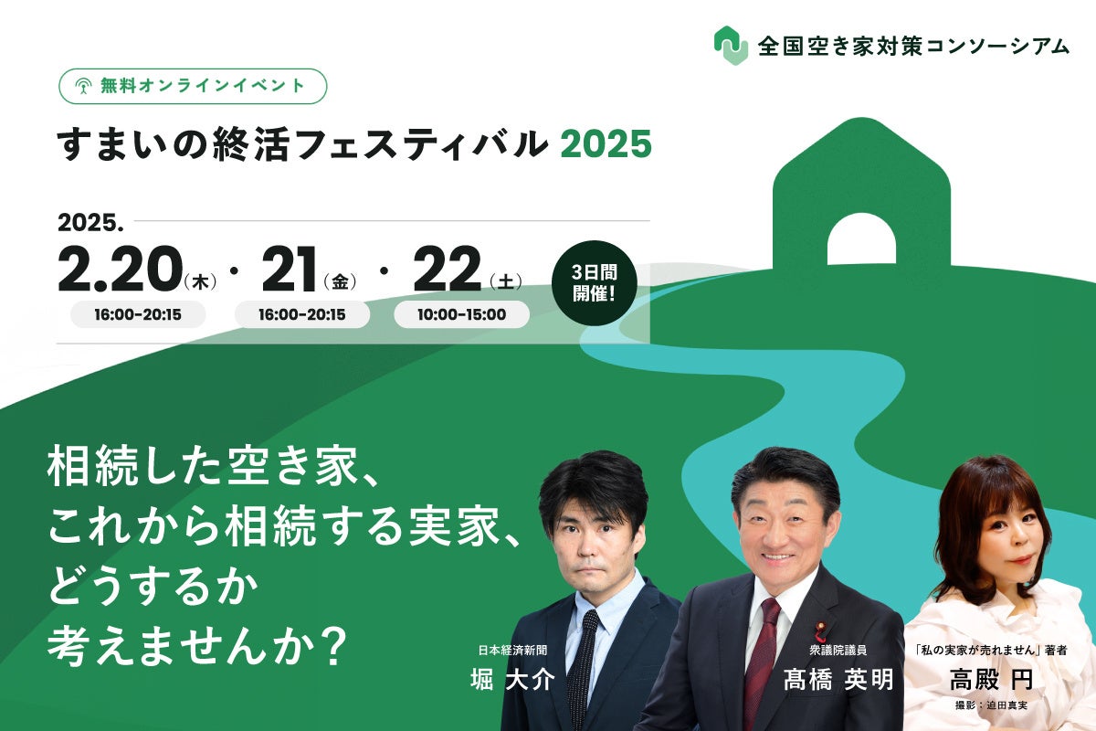 株式会社AGE technologies(代表取締役:塩原優太、以下「当社」)が、理事を務める「全国空き家対策コンソーシアム」主催にて、オンラインイベント「すまいの終活フェスティバル」を、2月20日(木)〜22日(土)の3日間開催します。