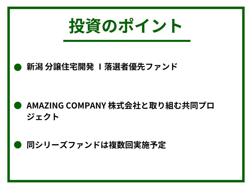 ~新潟 分譲住宅開発Ⅰ 落選者優先ファンド~